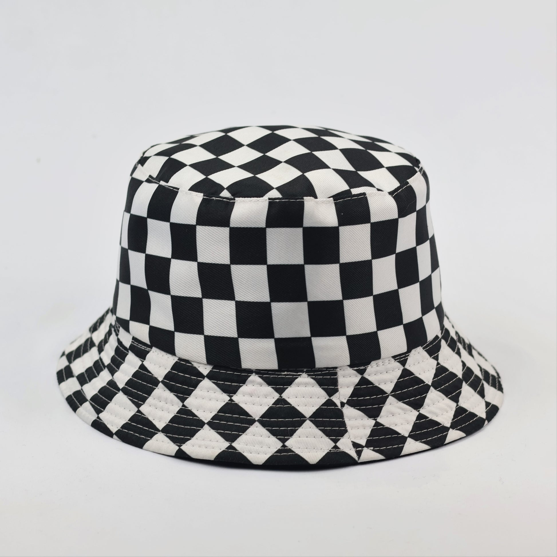 2-in-1 Monochrome Checkerboard & Butterfly Print Bucket Thrifted Hat - Unisex