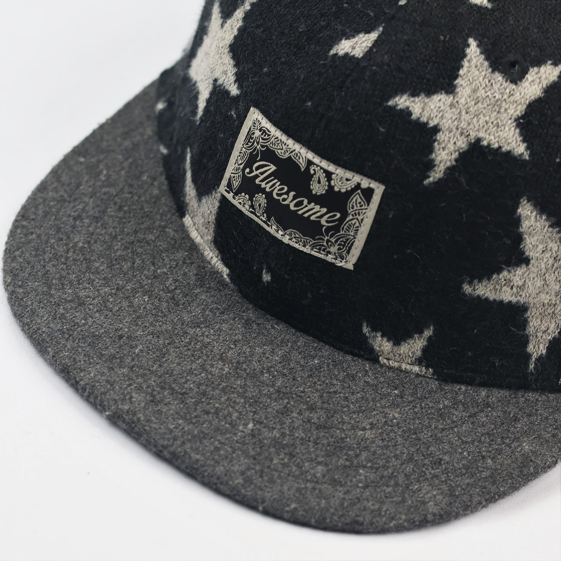 "Awesome" Stars Pattern Wool Blend Snapback Thrifted Hat – Black & Grey | Rs. 548.00