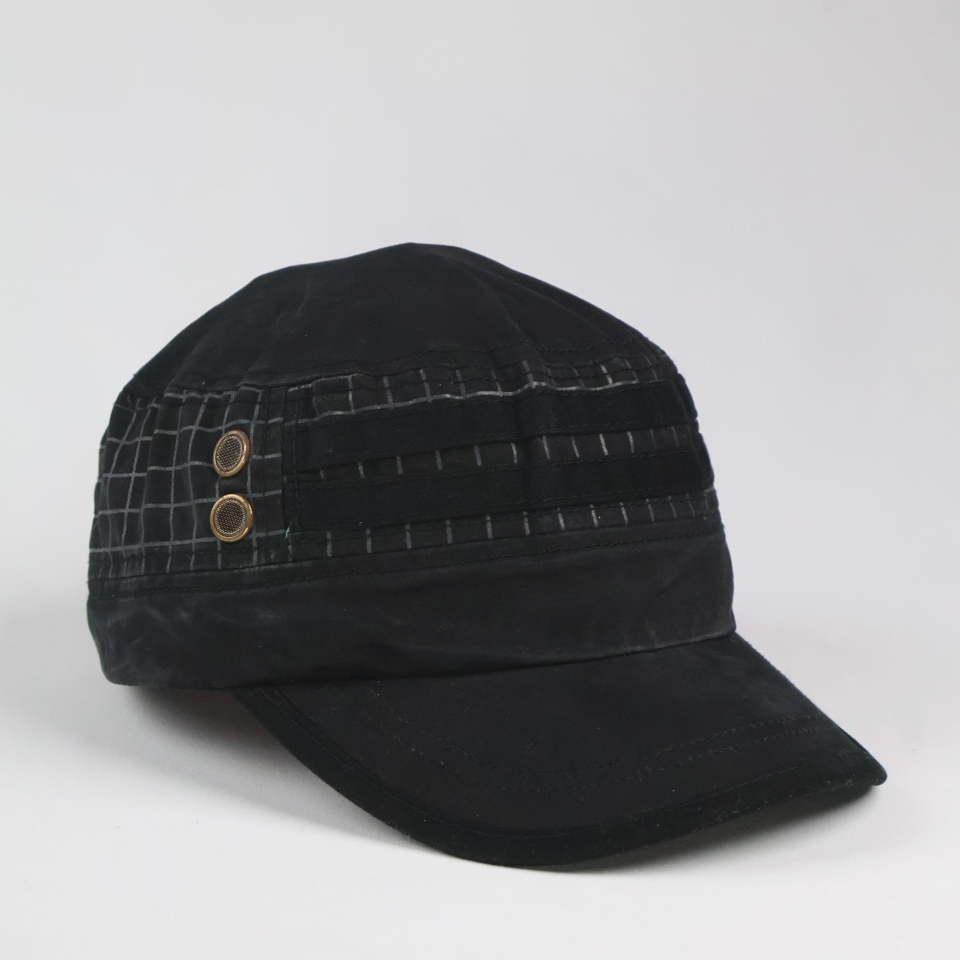 Black Cadet Cap with Grid Print Details | Rs. 398.00