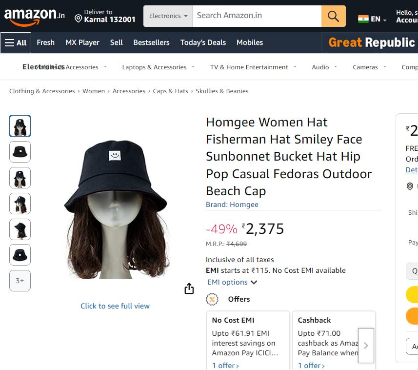 Classic Black Cotton Bucket Thrifted Hat - Minimalist Streetwear Sun Hat | Rs. 498.00