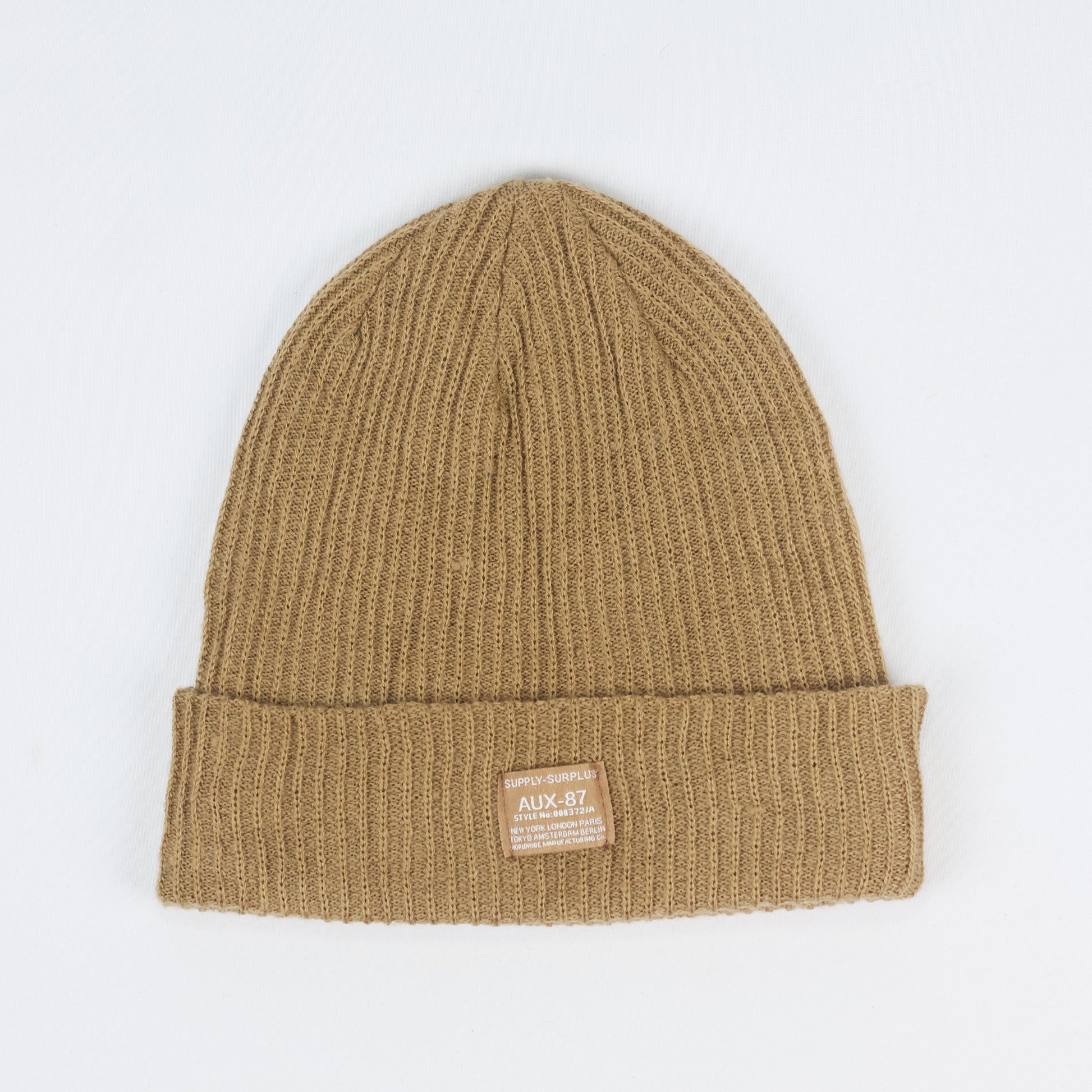 Cotton On Mustard Brown Ribbed Thrifted Beanie – Supply Surplus Patch Winter Hat (Copy)