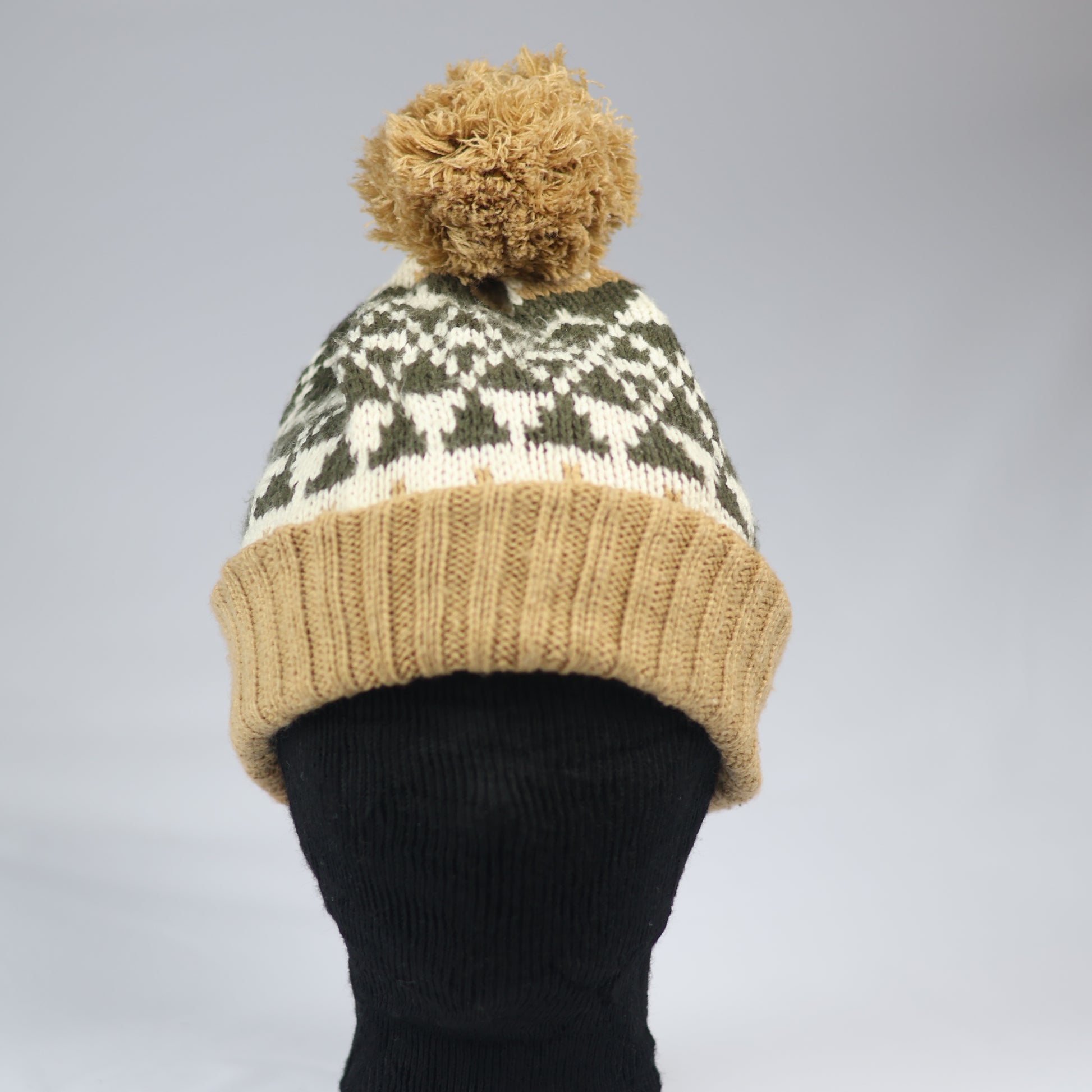 Detailing: Features a large, fluffy faux-fur/yarn pom-pom on top.