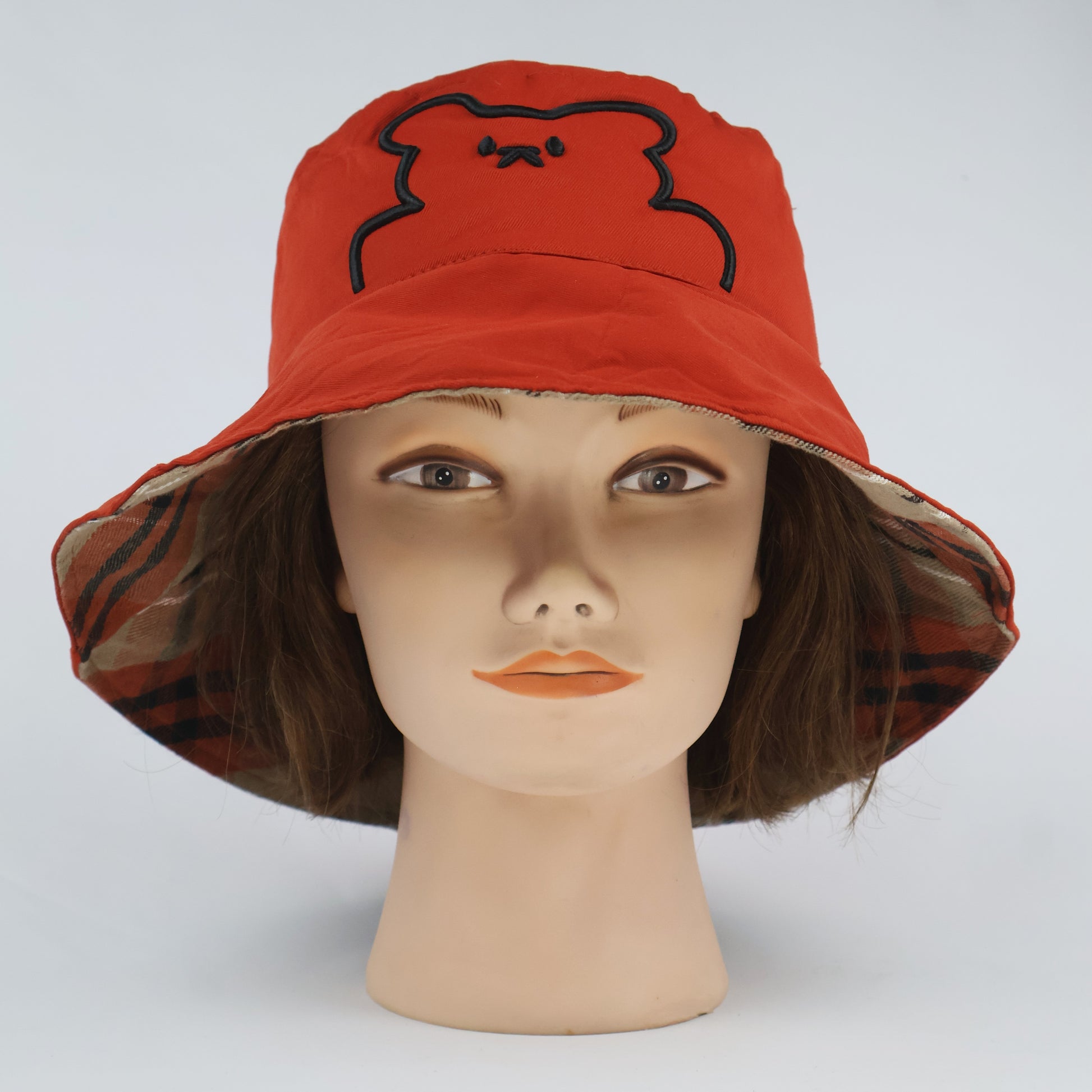Reversible Bucket Hat - Orange & Plaid (56-58cm)