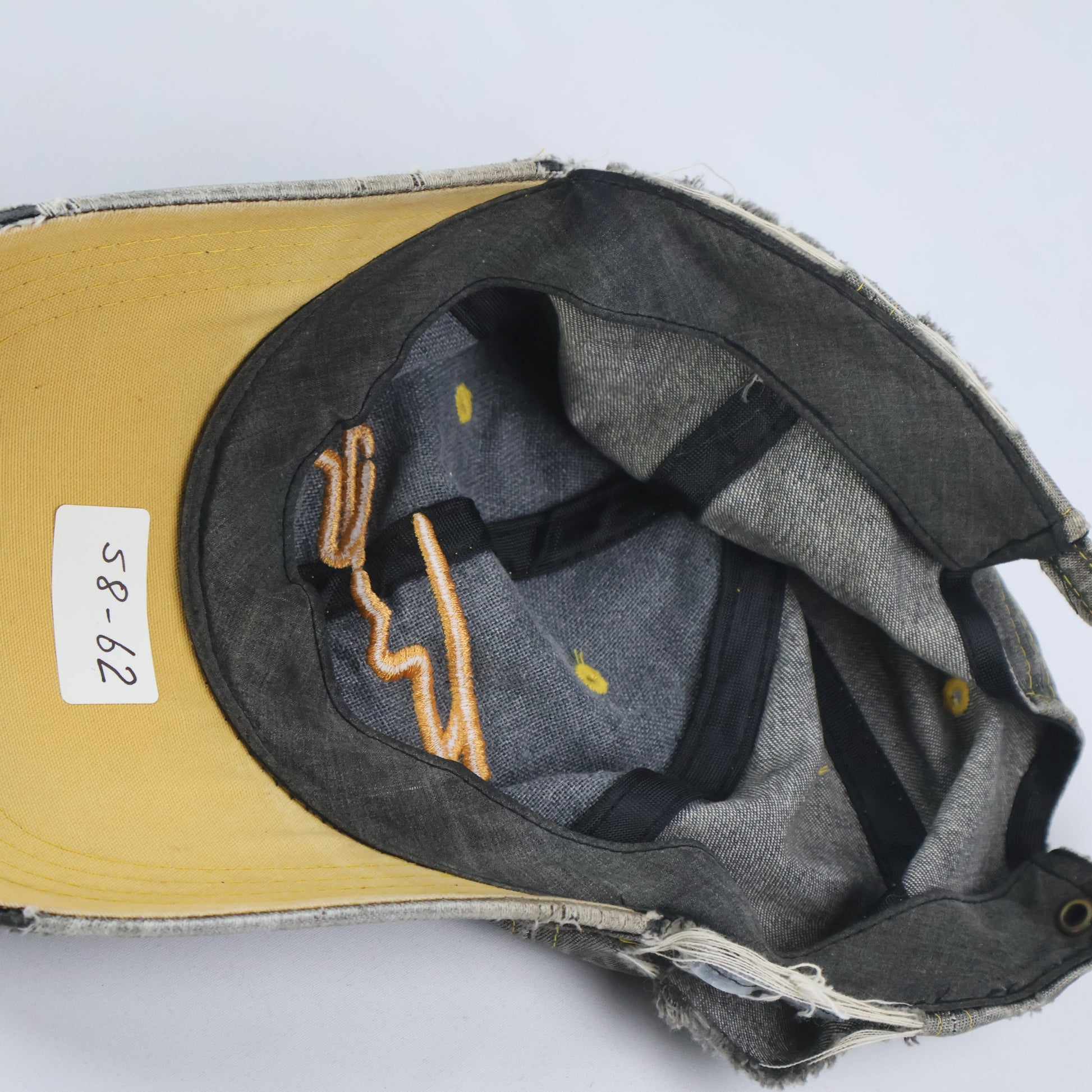 Note: This is a thrifted item. The faded wash and heavily distressed brim are intentional parts of the design. Please review all photos for overall condition.