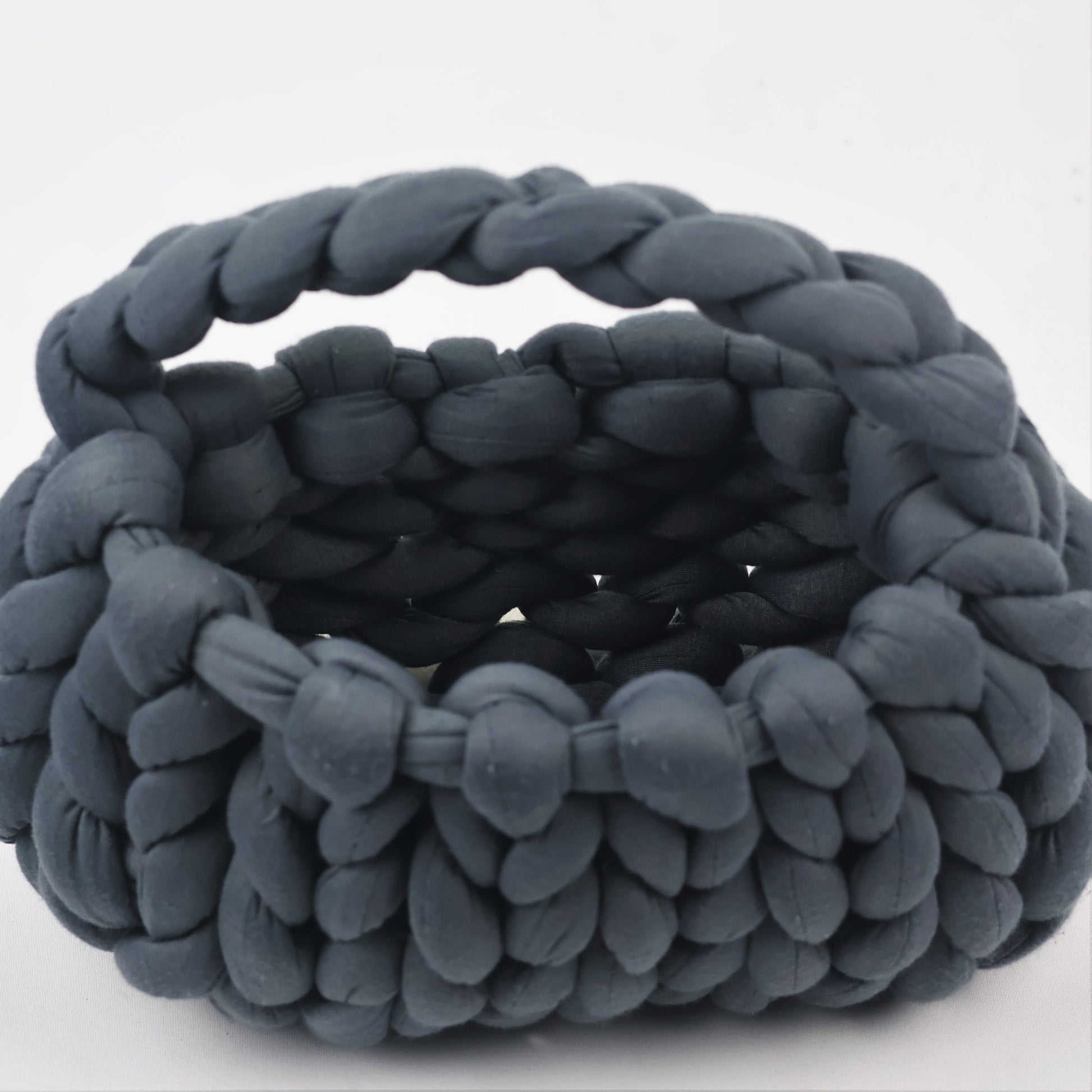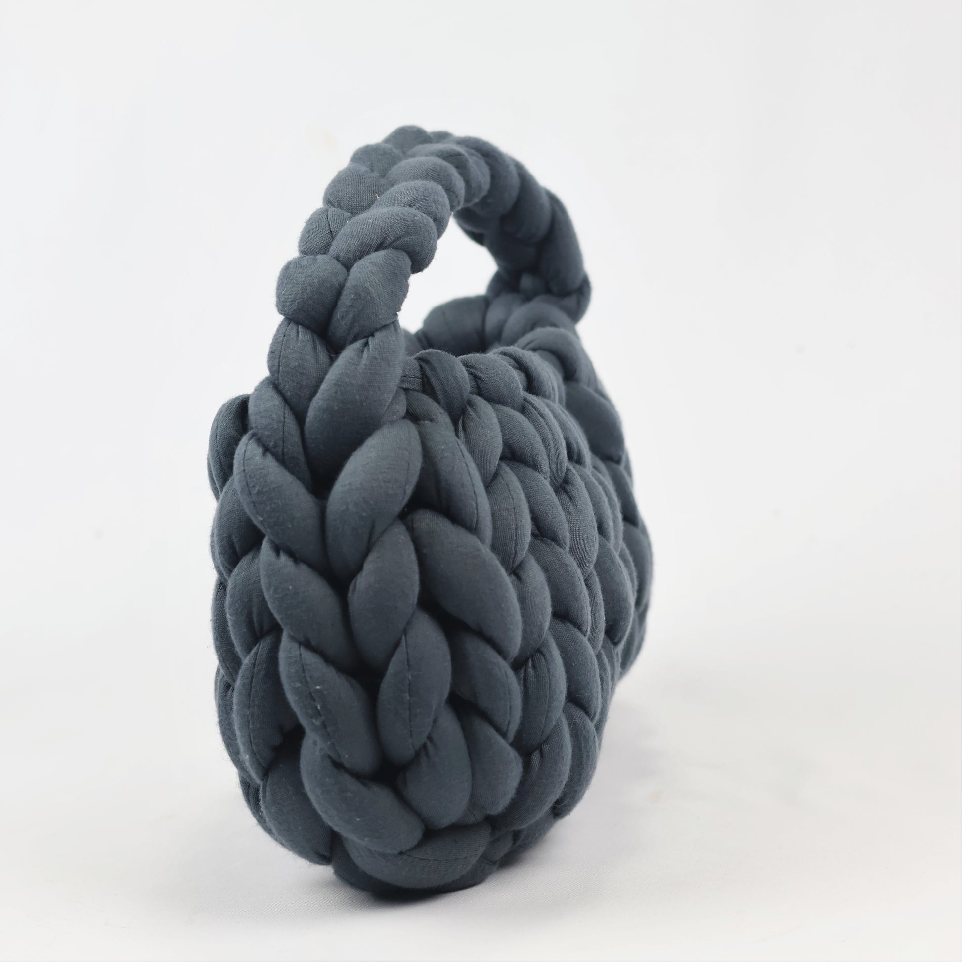 Handmade Dark Grey Chunky Yarn Bag | Soft Braided Top Handle | Rs. 748.00