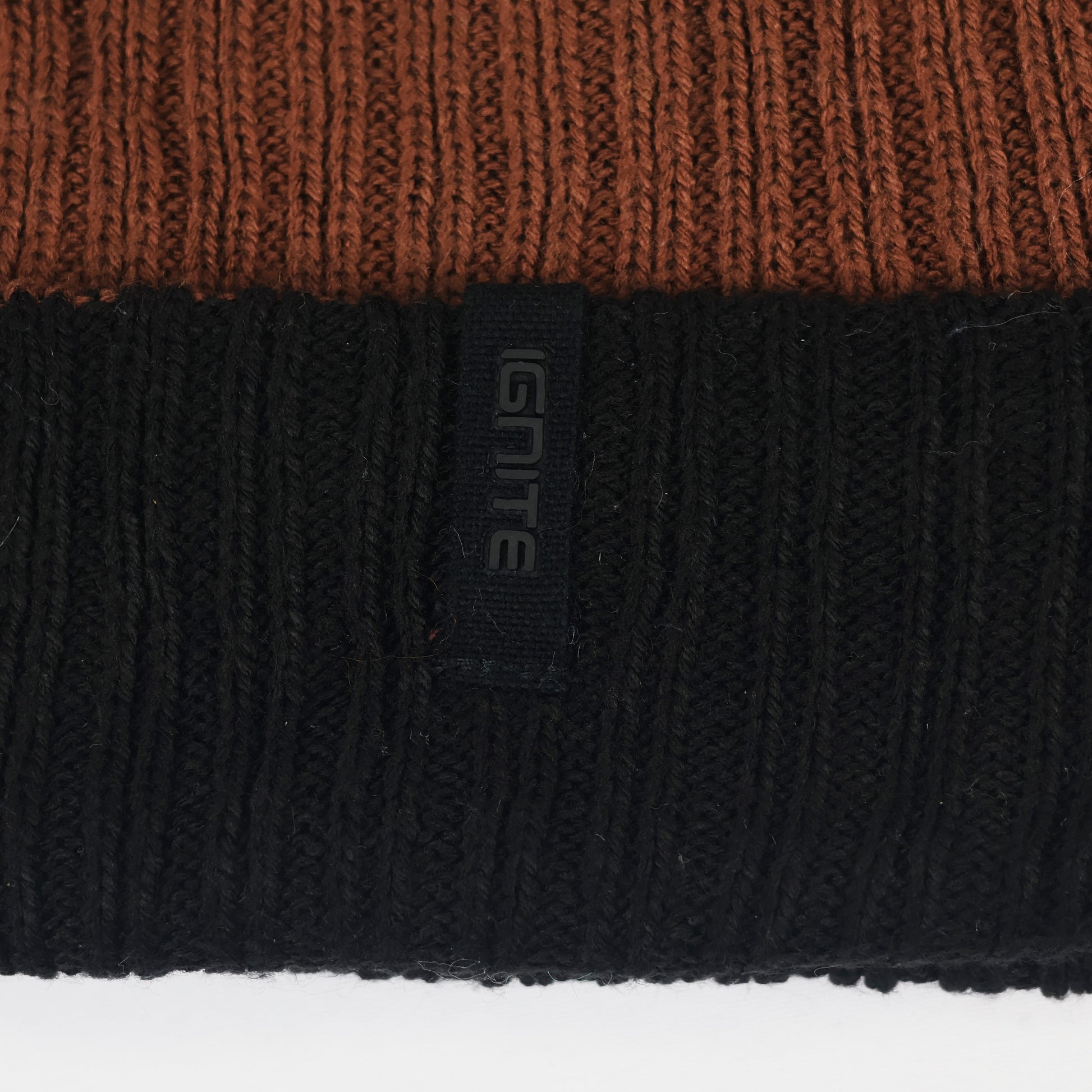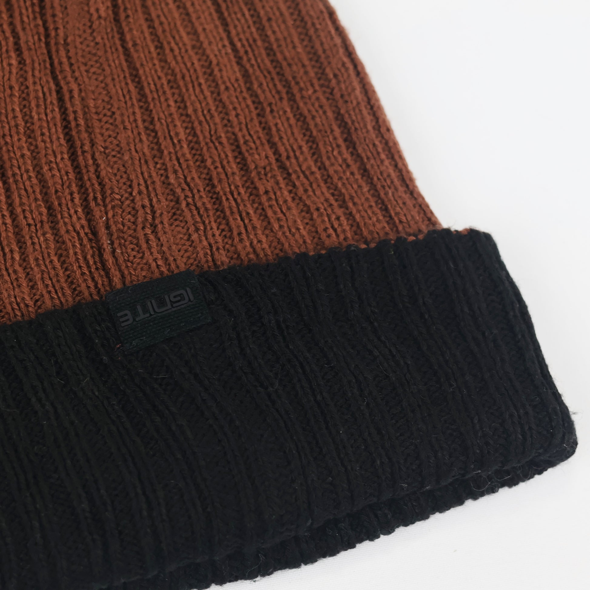 Ignite Rust Brown & Black Two-Tone Ribbed Cuffed Thrifted Beanie | Rs. 548.00