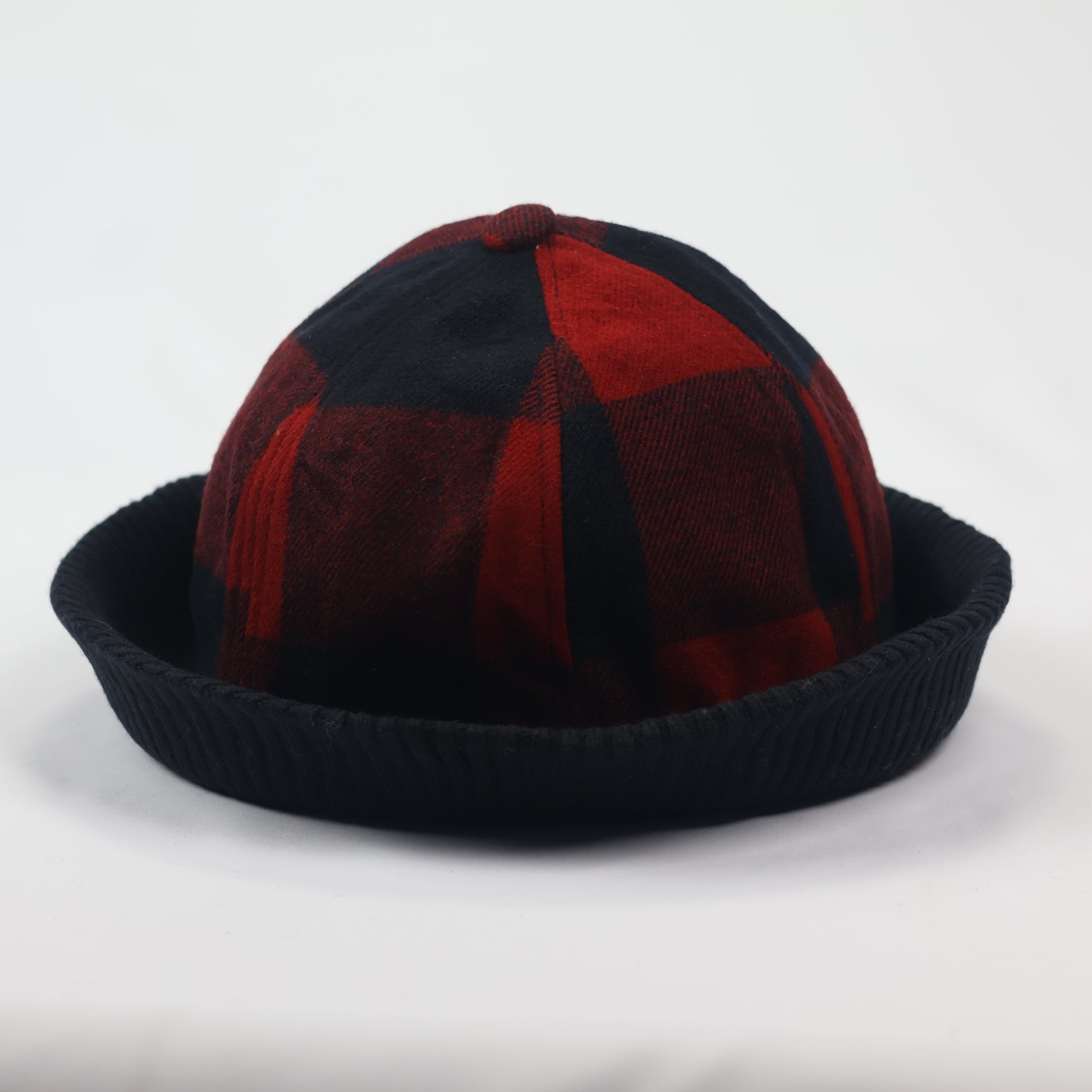 Korean Hybrid Bucket Hat | Red & Black Checkered Flannel with Knit Cuff | Rs. 448.00
