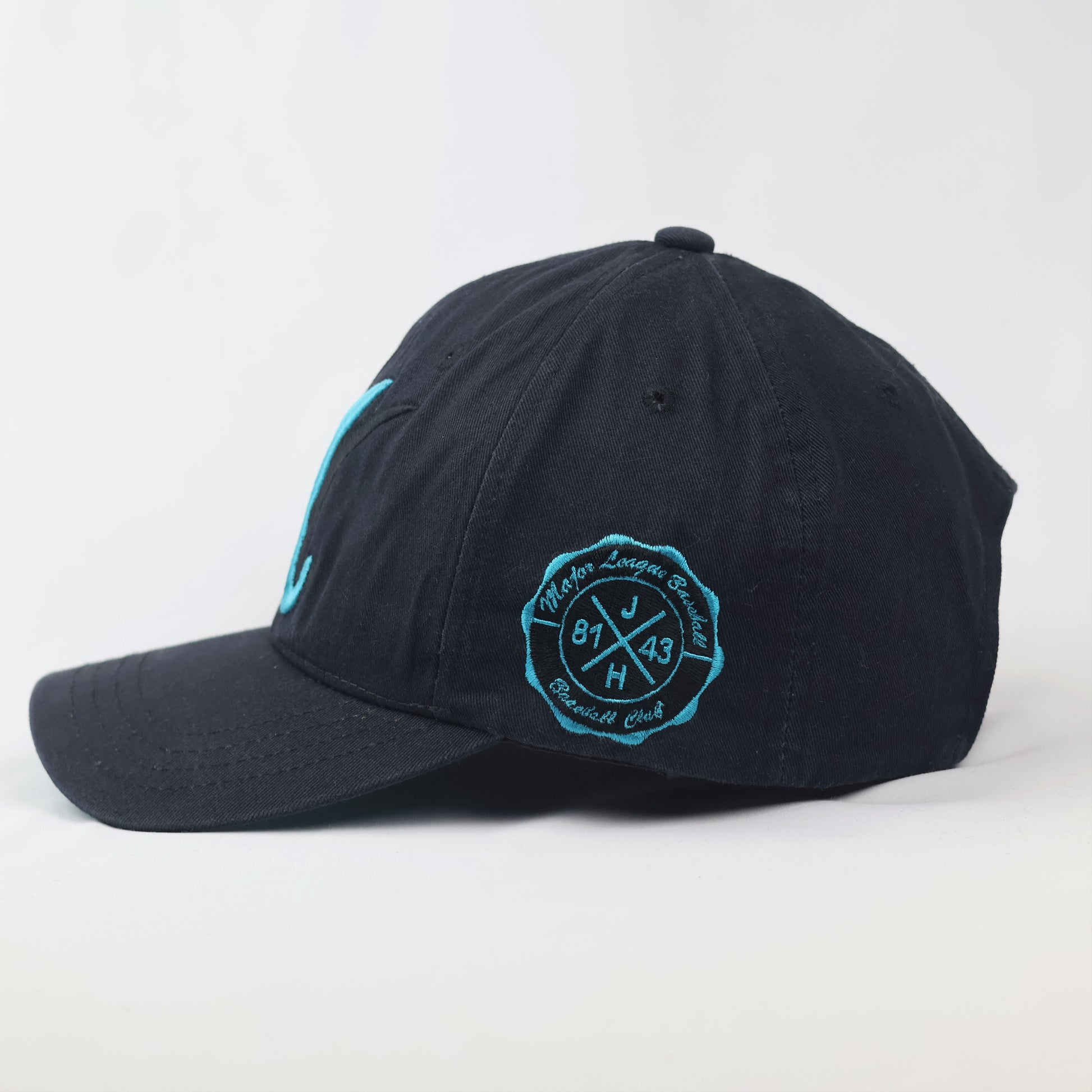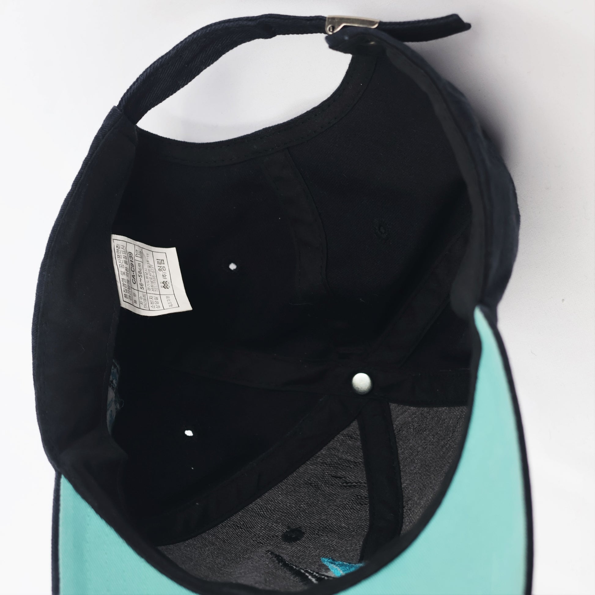 Color: Deep Navy Blue with Teal accents and a Teal under-brim.