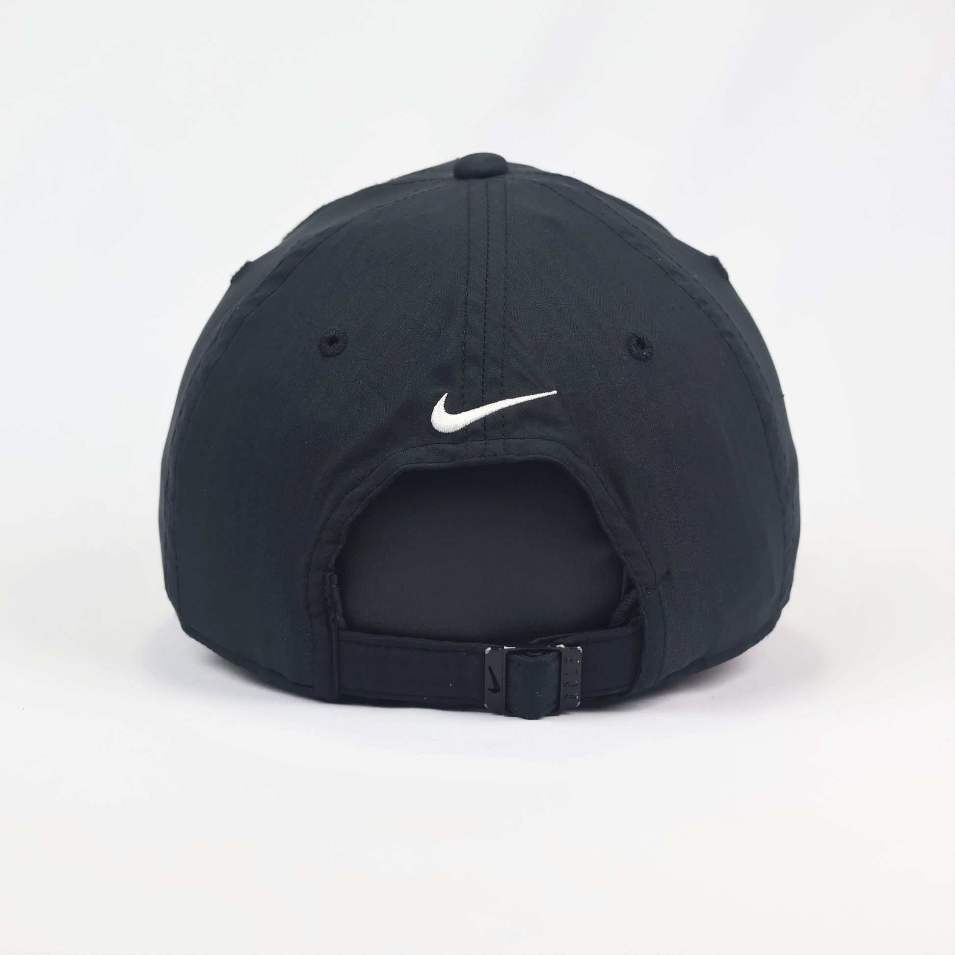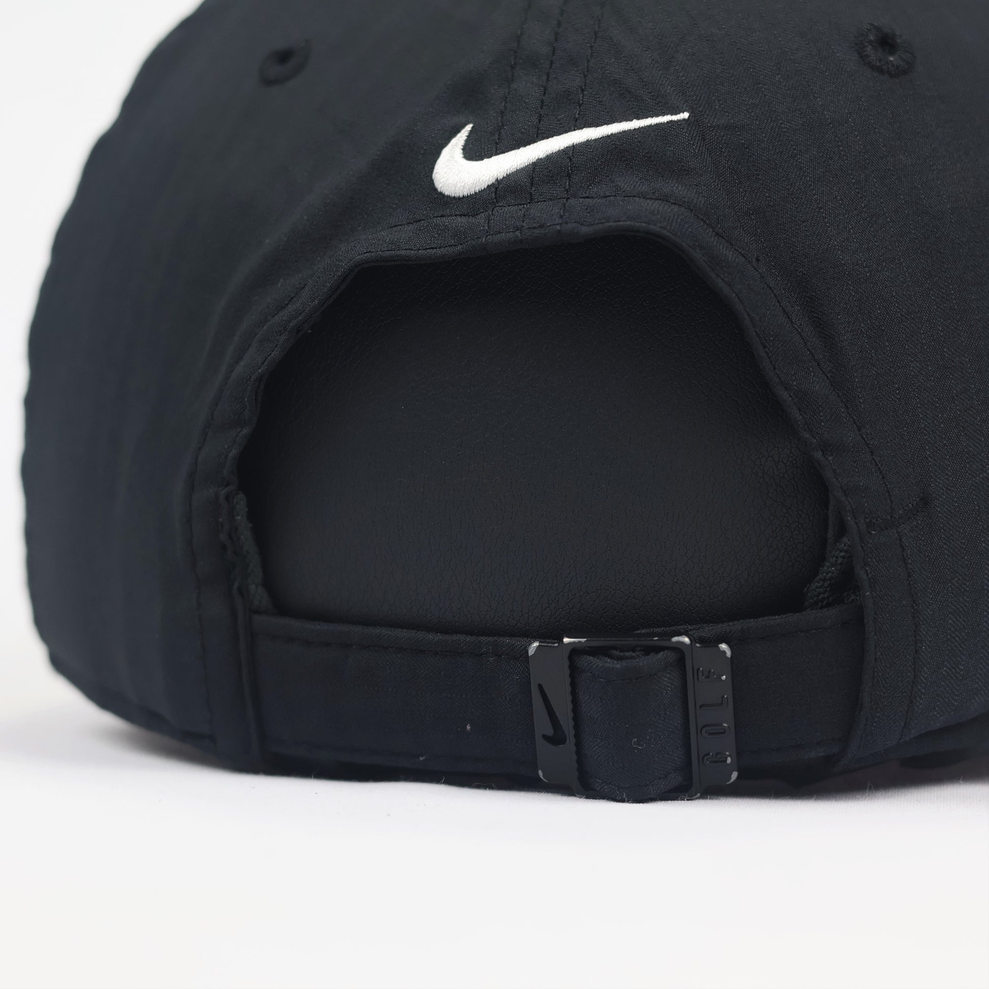 Closure: Adjustable fabric back strap with a branded Nike metal tri-glide buckle
