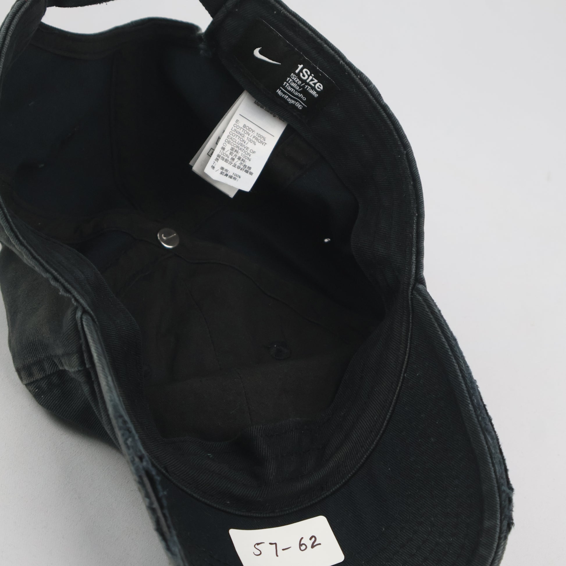 Size: One Size (Adjustable). Interior sticker lists 57-62cm.