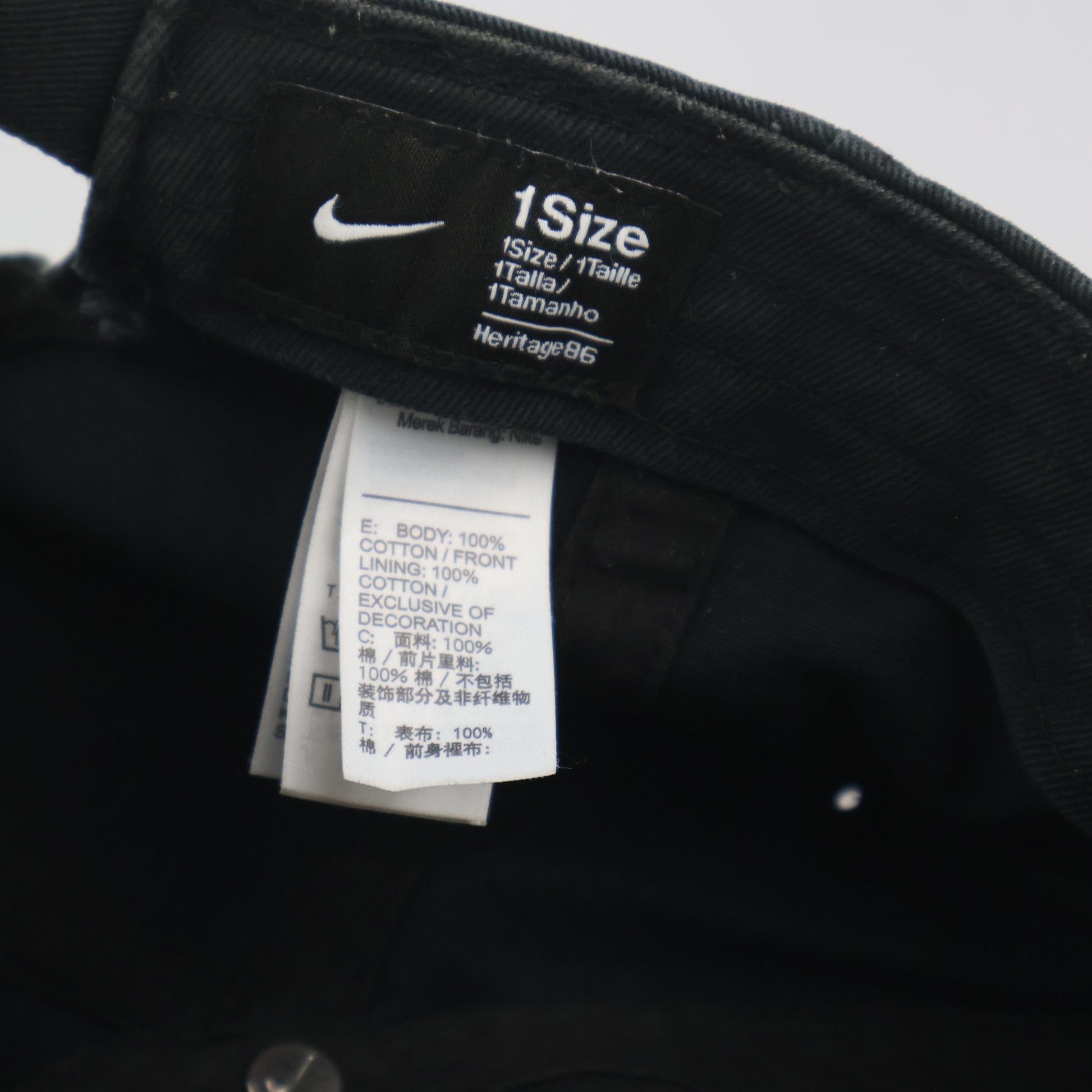Closure: Adjustable fabric strap with a branded Nike swoosh metal buckle.