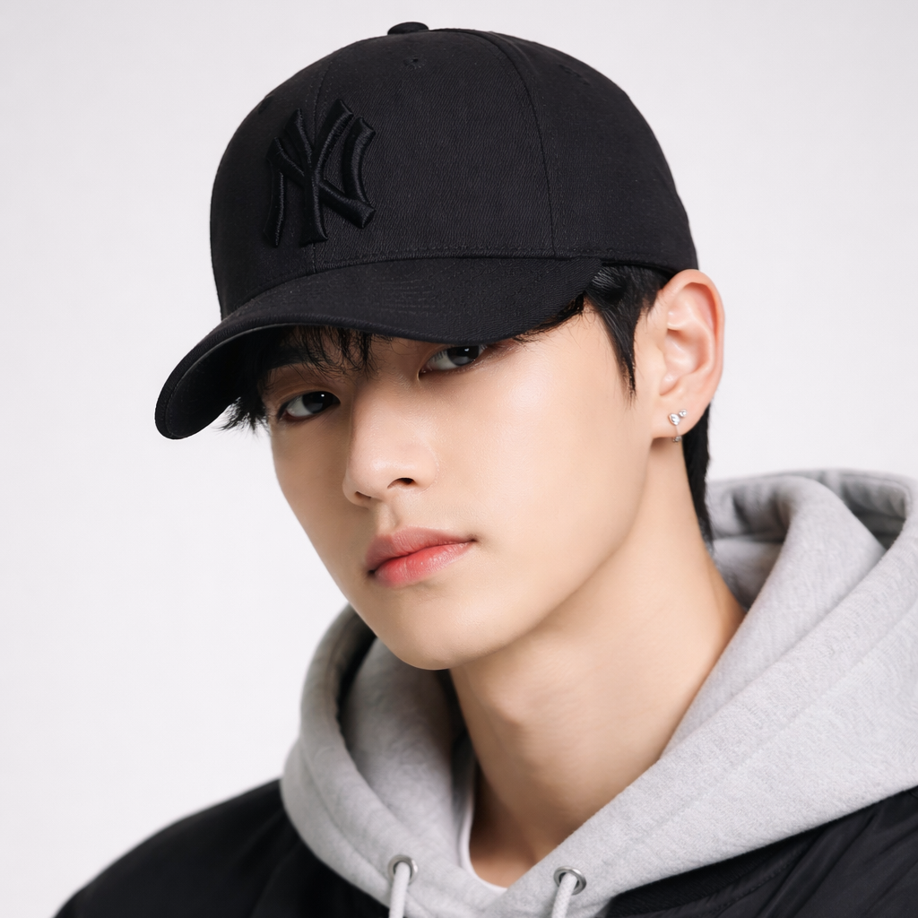 Front Detail: Raised 3D tonal "NY" logo embroidery