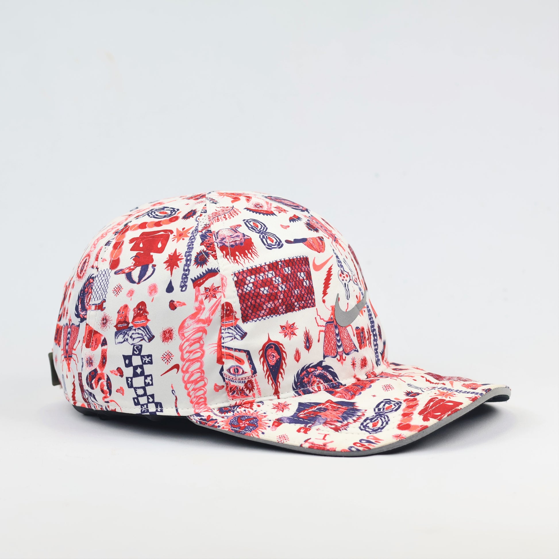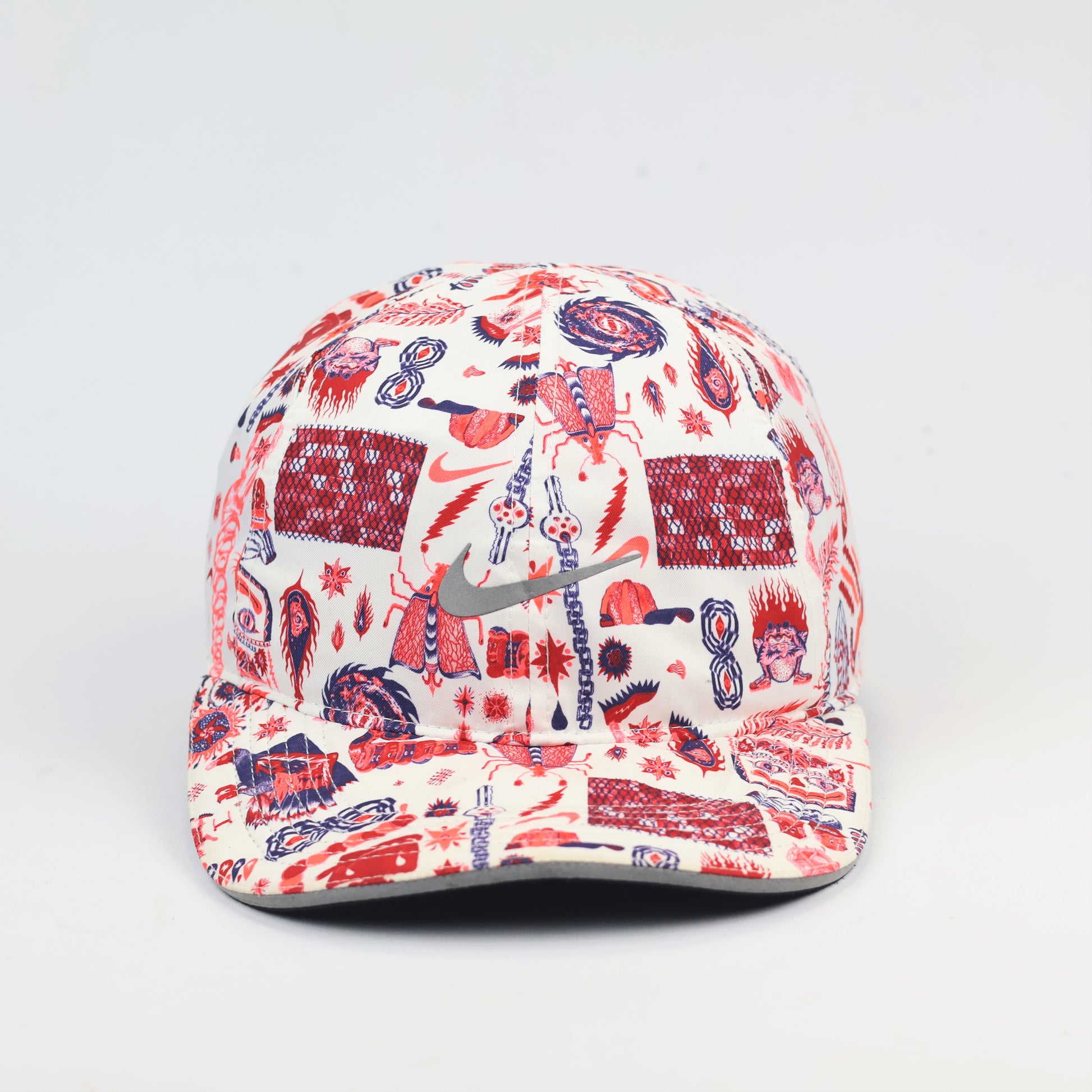 Rare Nike Dri-FIT "Featherlight" Running Thrifted Hat | White Graphic Print Snapback