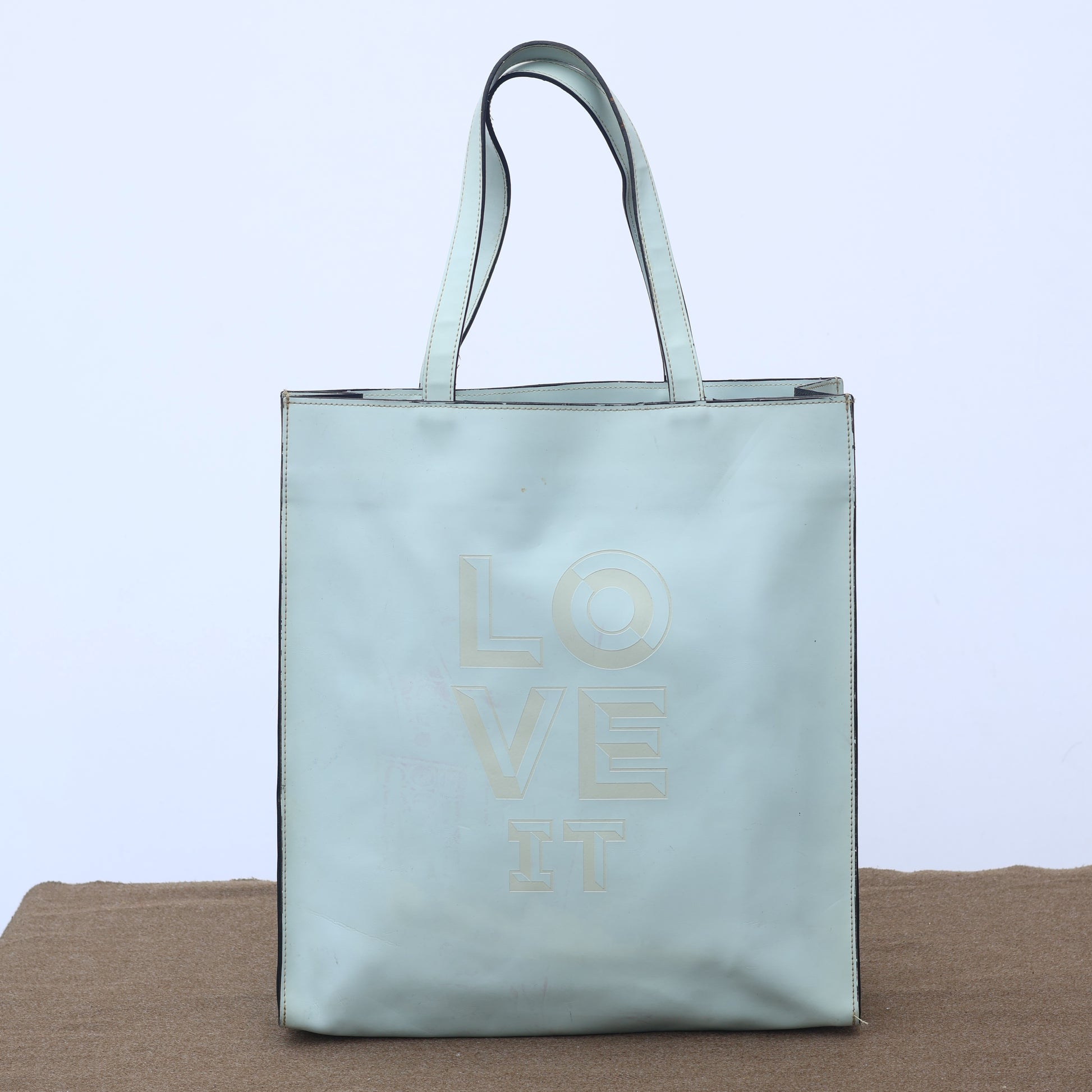 Retro "LOVE IT" Graphic Leather Thrifted Tote Bag - Mint Green | Rs. 948.00