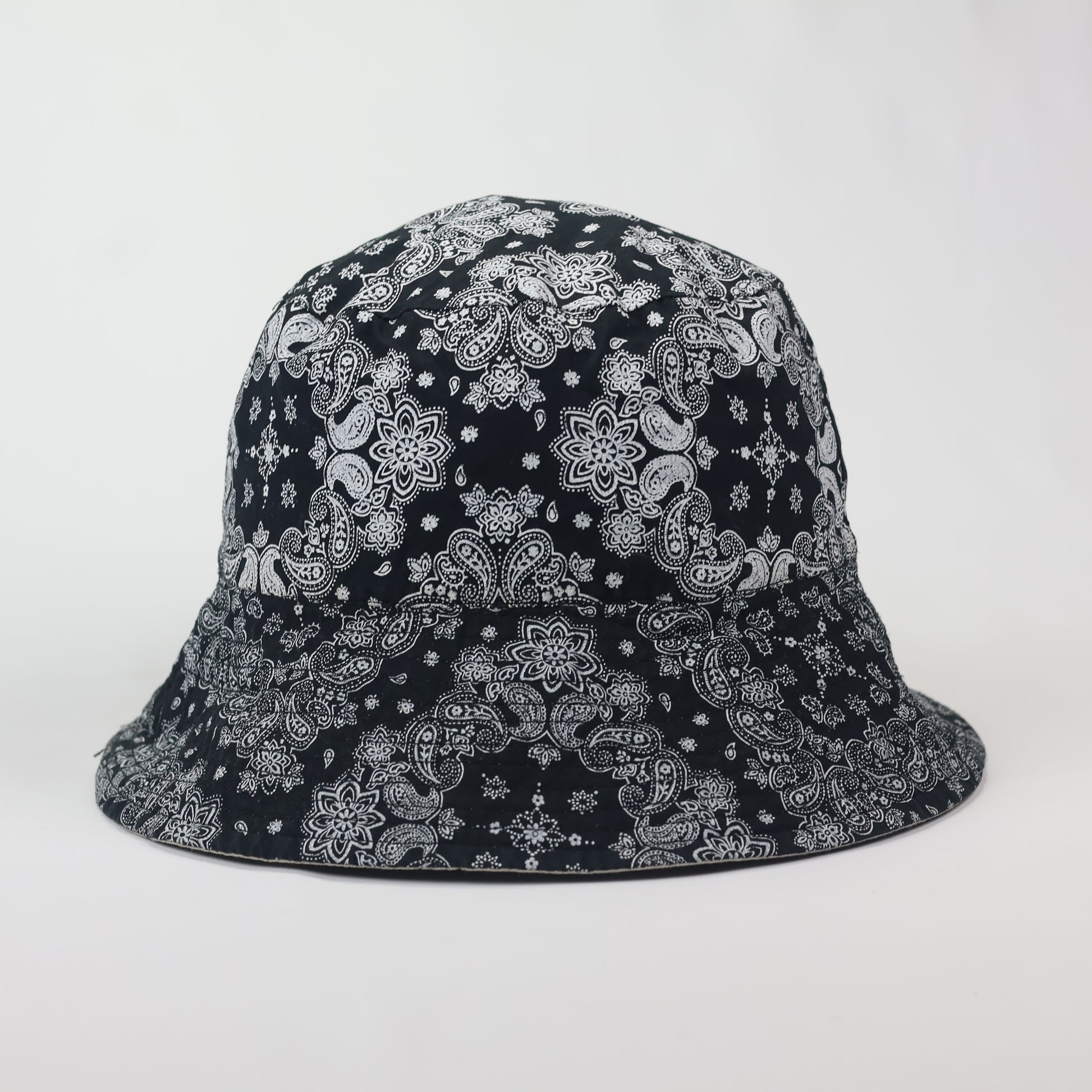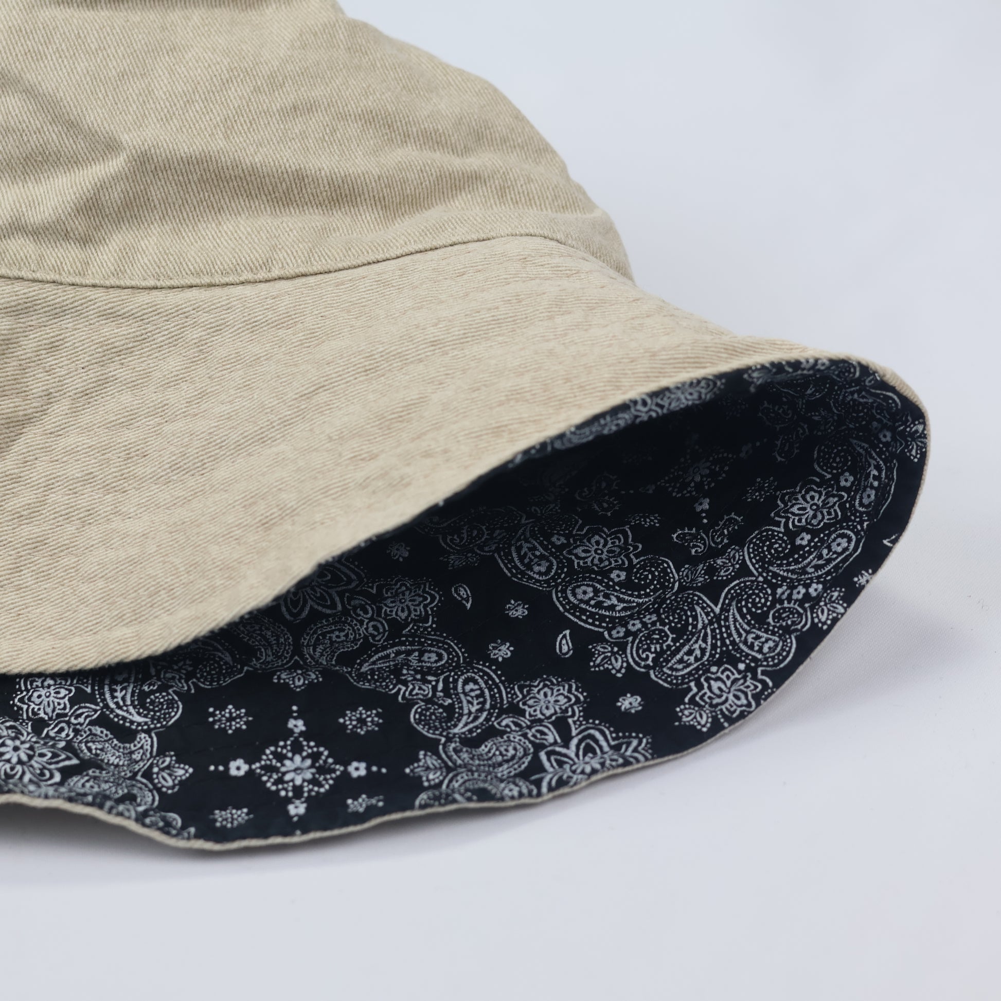 Reversible 2-in-1 Bucket Hat | Black Paisley Bandana & Solid Beige | Unisex | Rs. 548.00