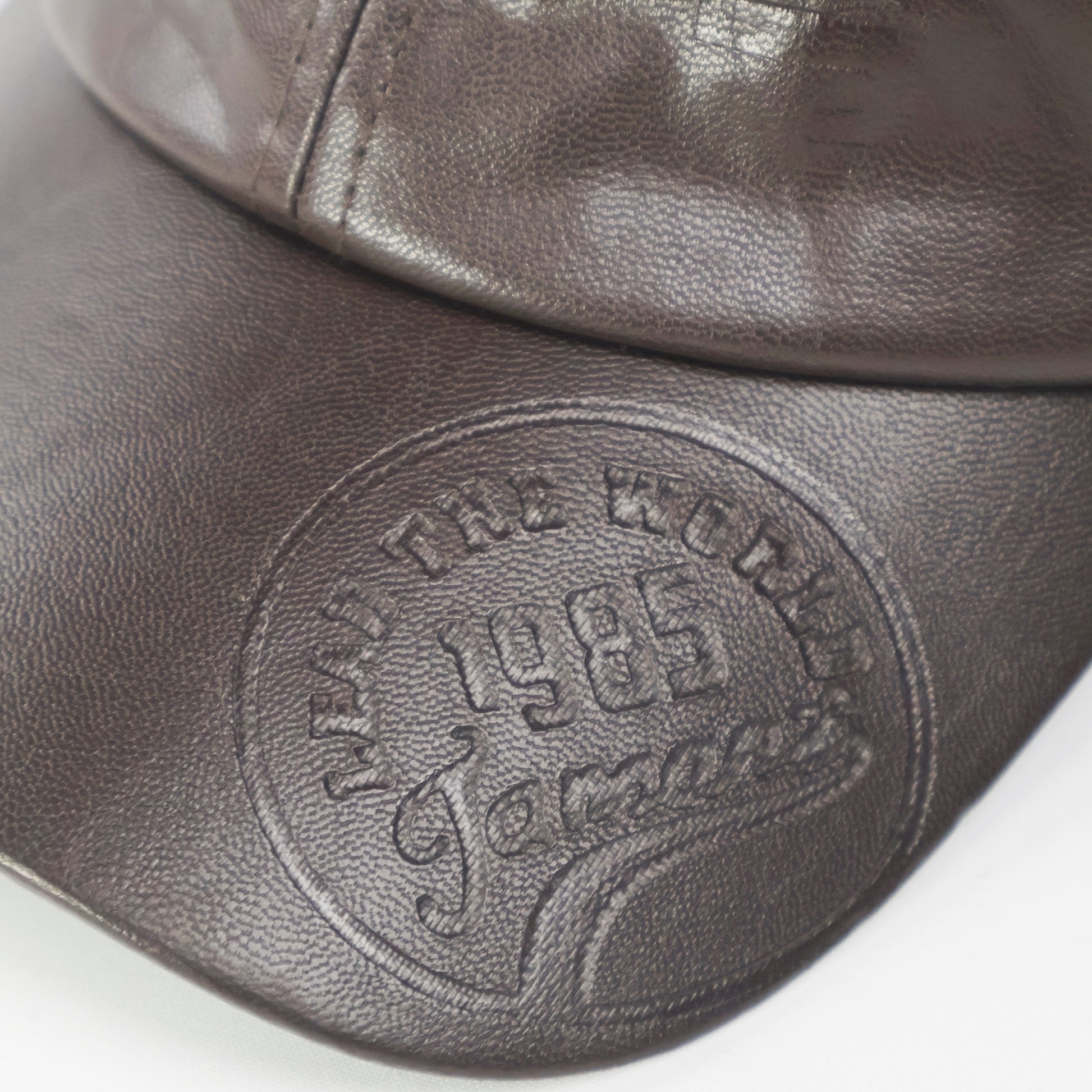 Details: A large abstract logo on the front and a retro "1985" crest on the brim.