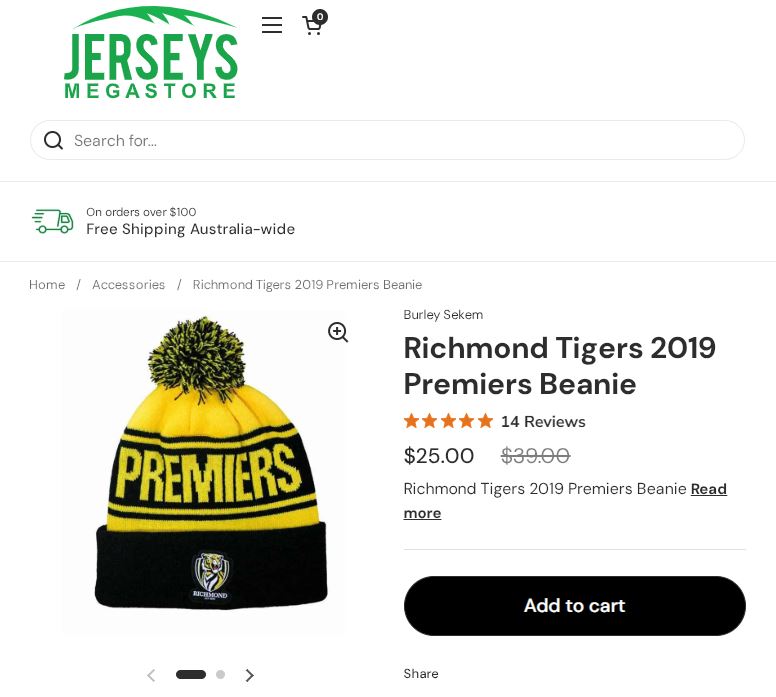 Richmond Tigers AFL Premiers Thrifted Pom Beanie | Adult Winter Knit Cap | Rs. 598.00