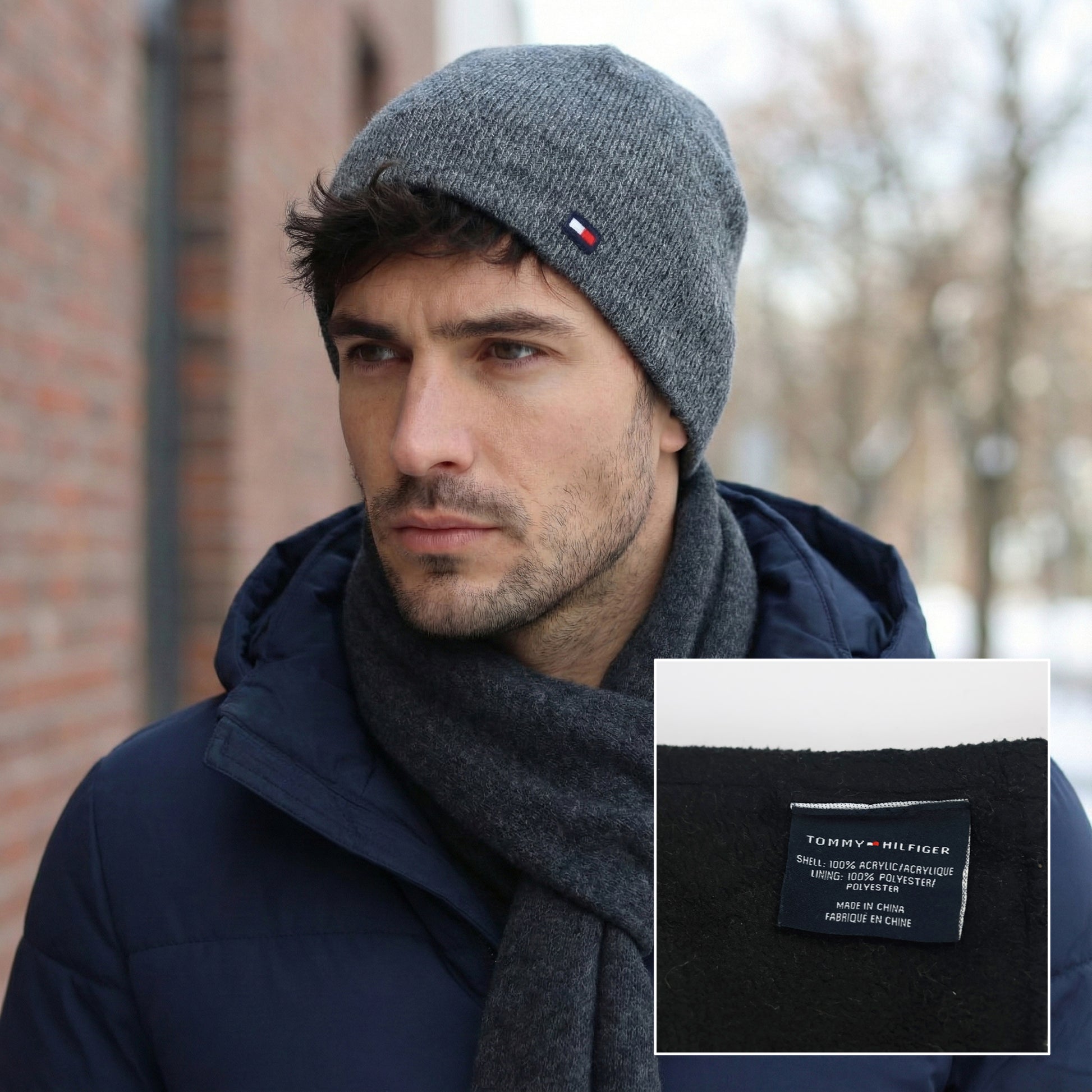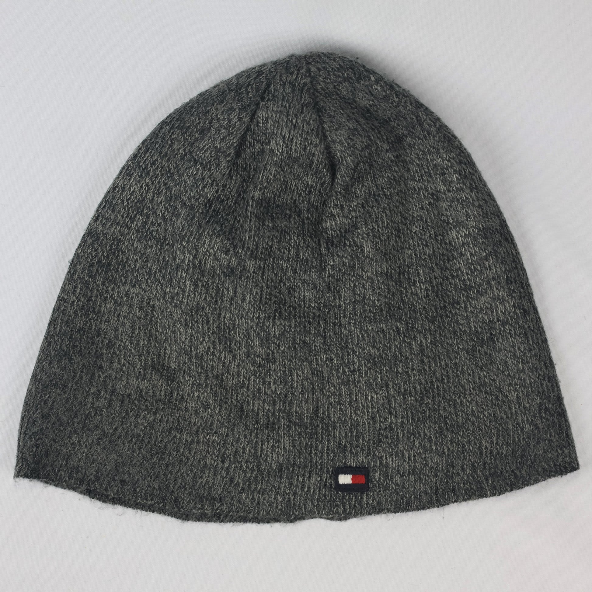 Tommy Hilfiger Unisex Grey Ribbed Thrifted Beanie - Classic Flag Logo Hat
