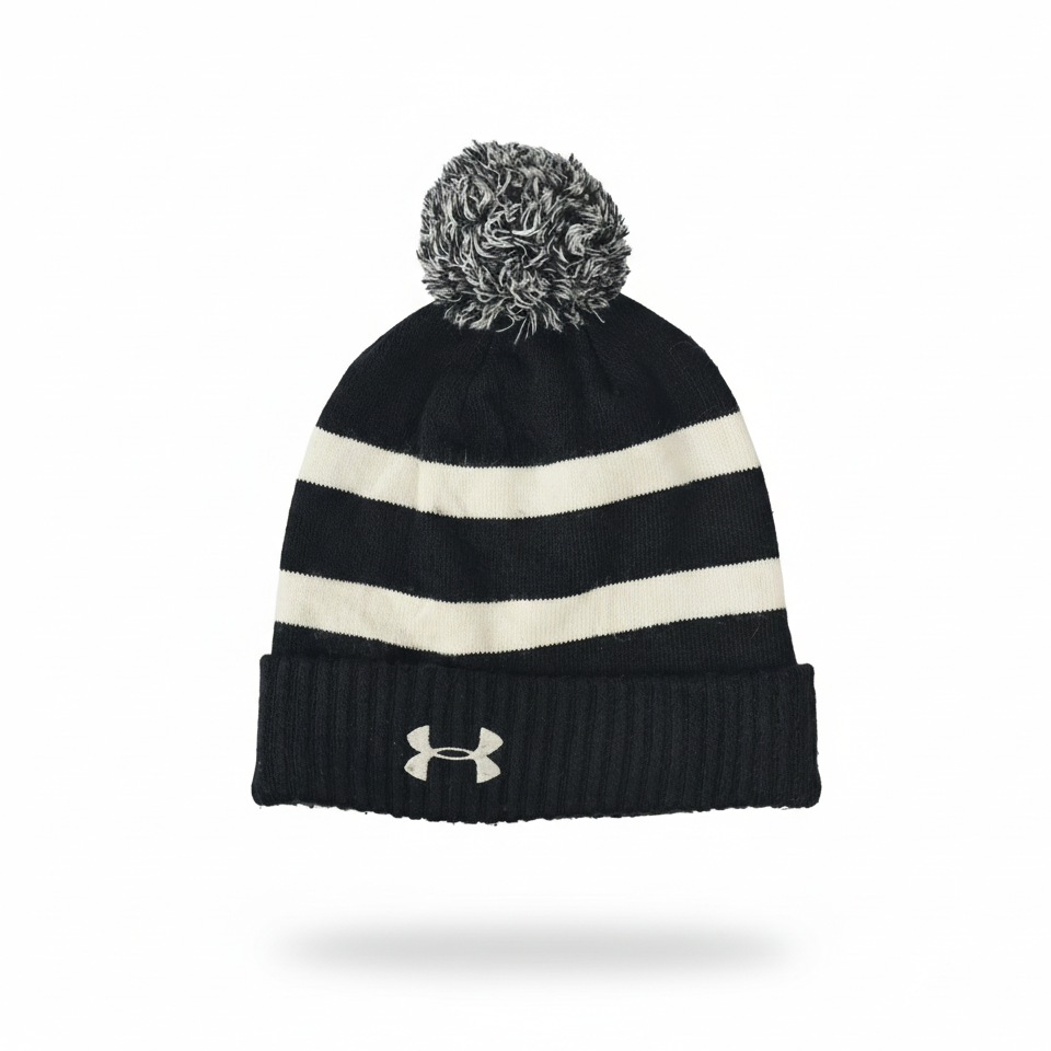 Under Armour Youth Black and white Pom Thrifted Beanie - ColdGear Winter Hat | Rs. 498.00