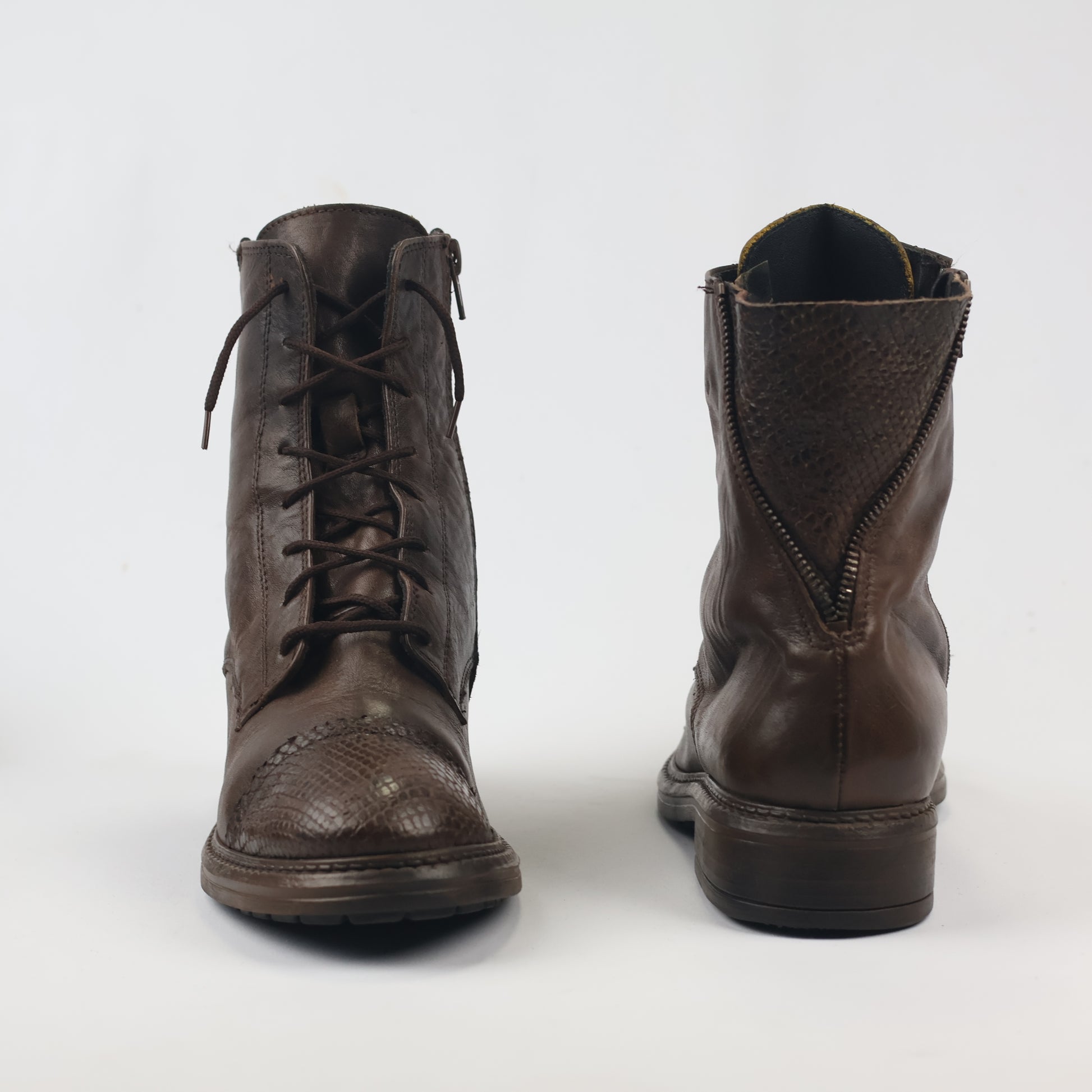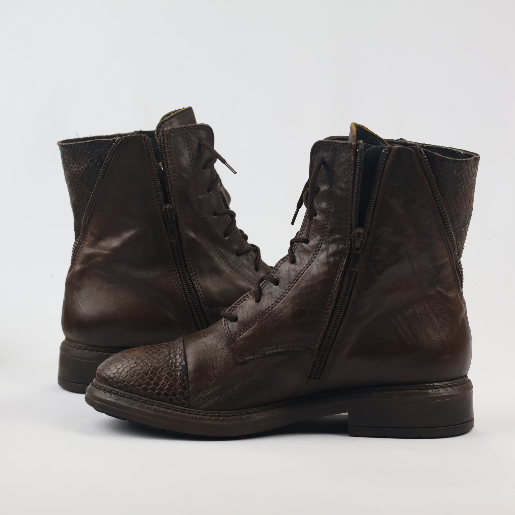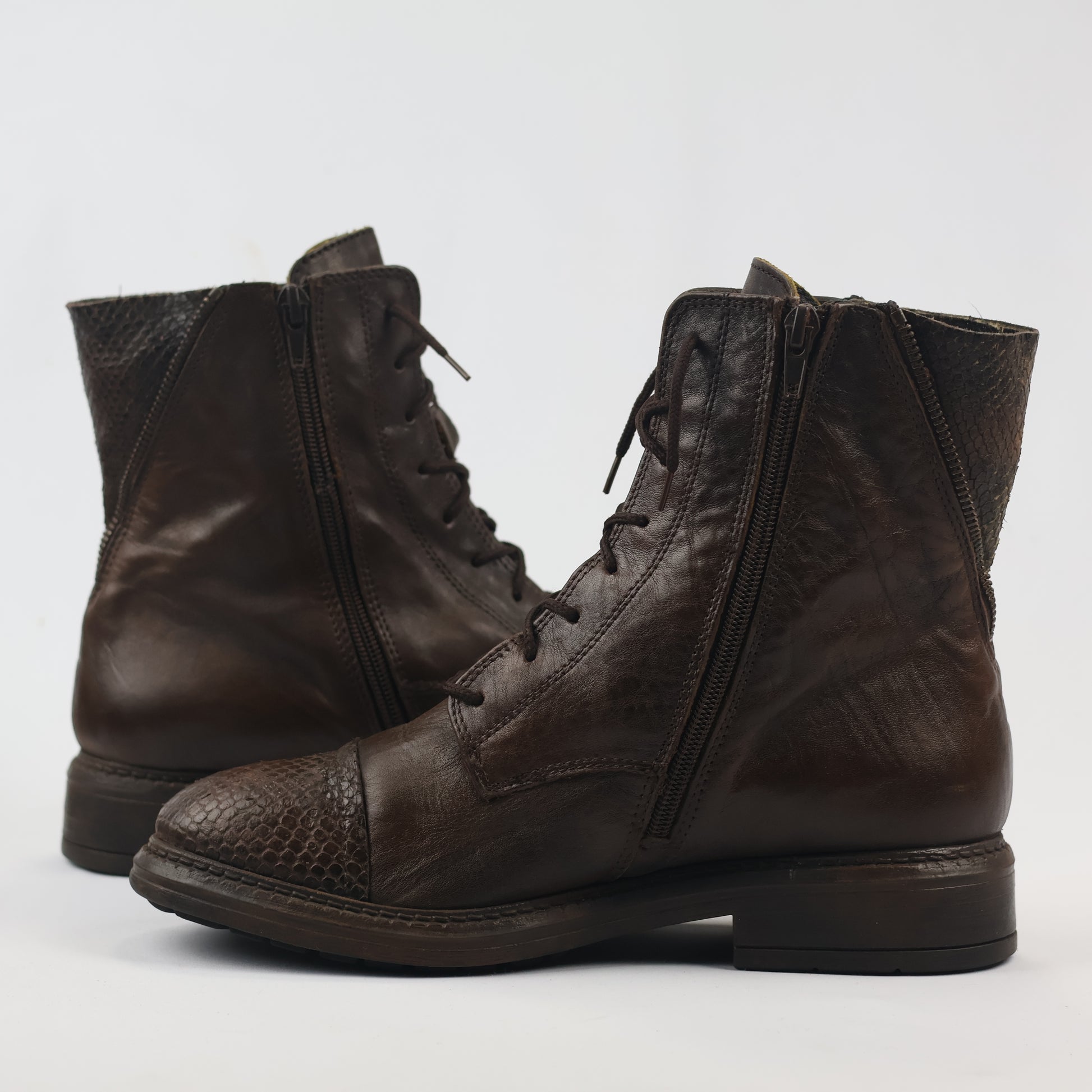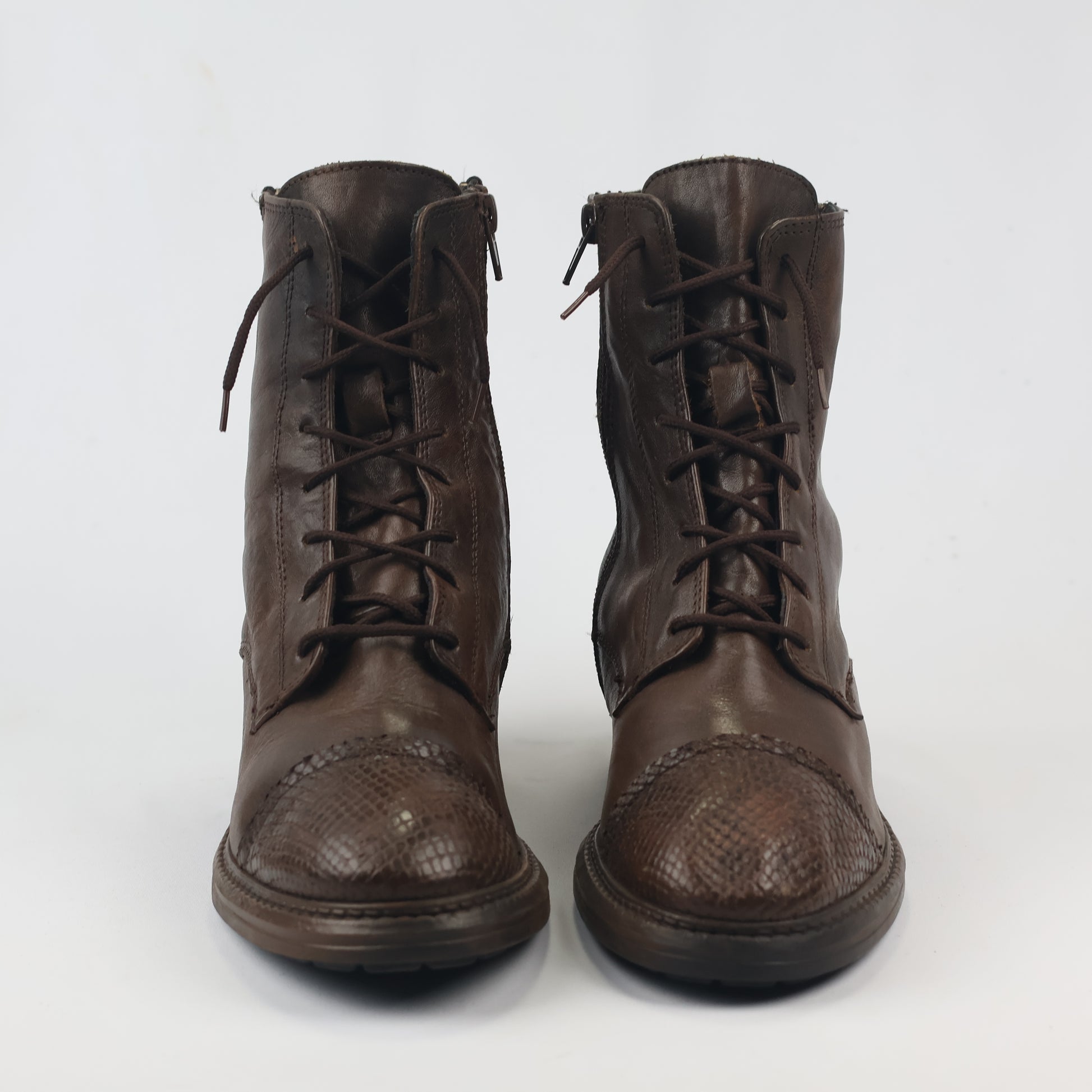 Vintage Brown Leather Lace-Up Boots with Snakeskin Detail | Rs. 1,498.00