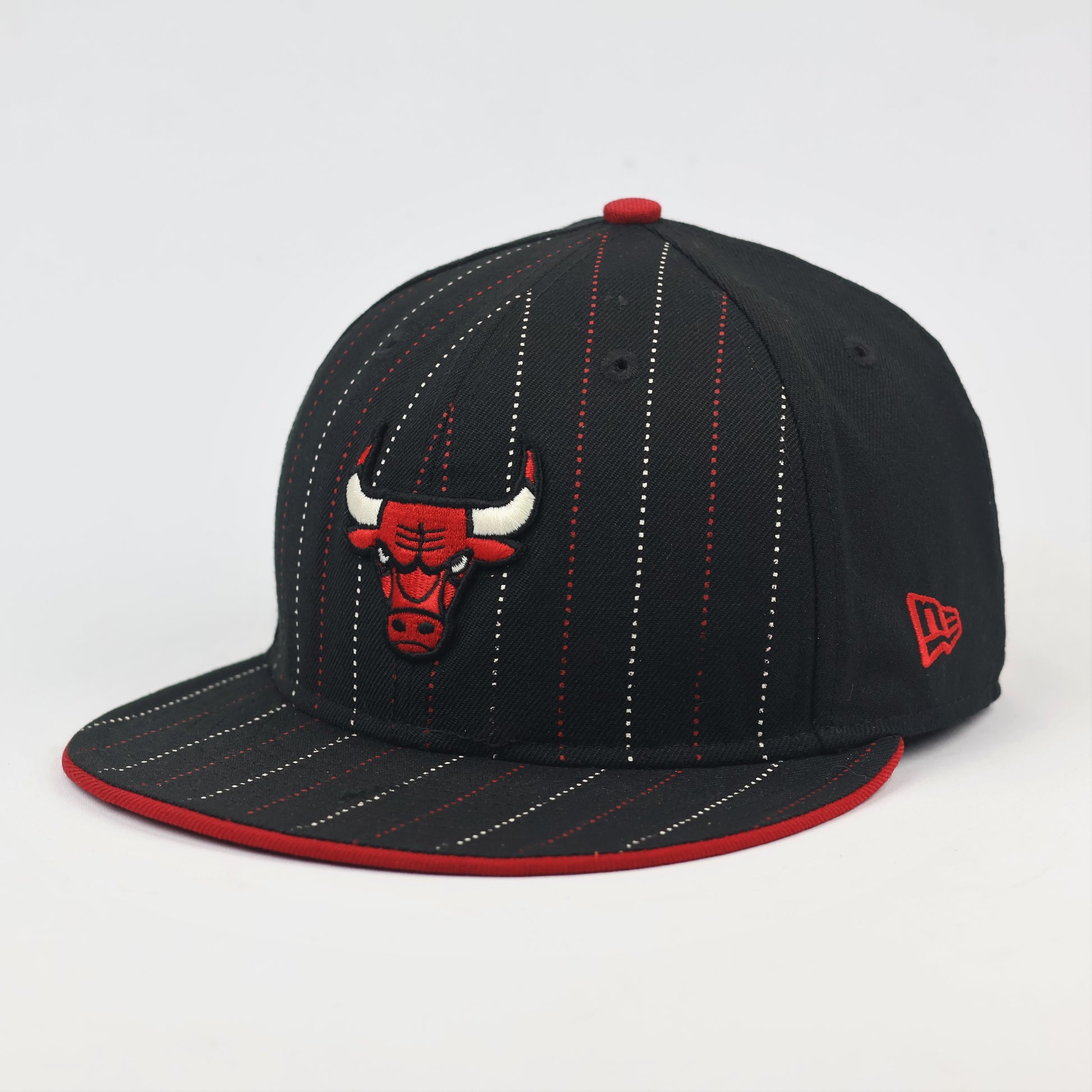 Vintage Chicago Bulls New Era Pinstripe Thrifted Cap - Red & White Details