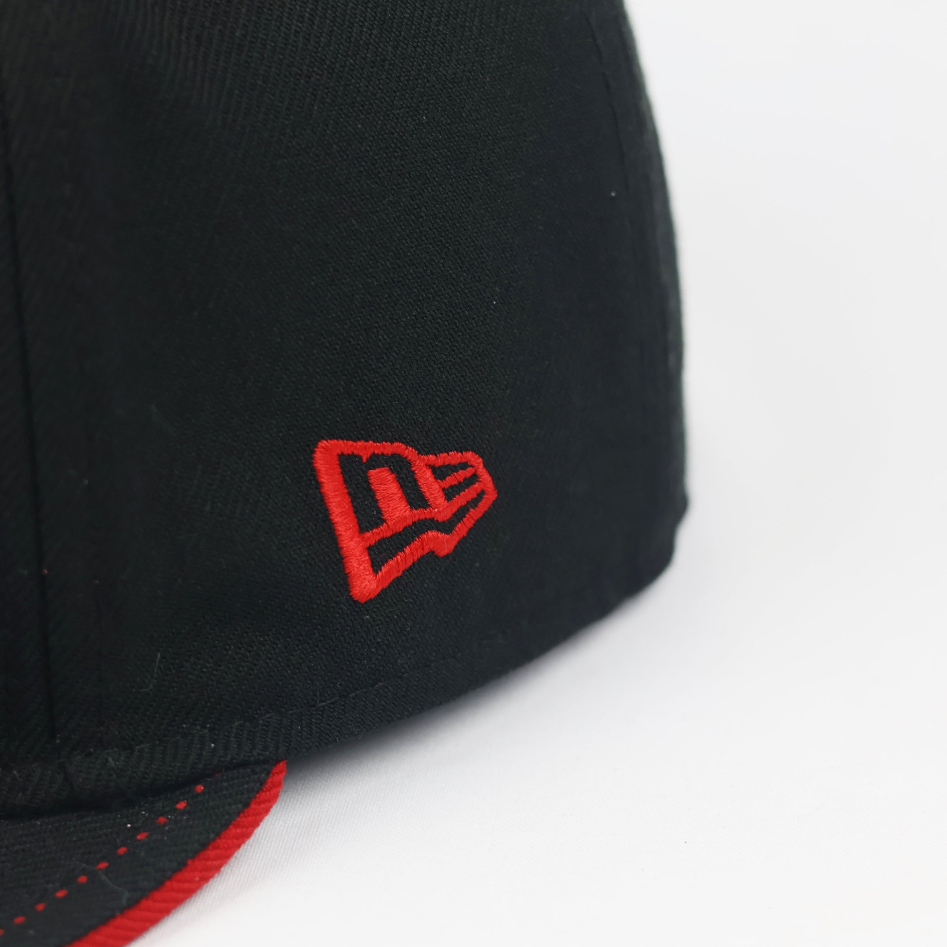 Color: Black with Red and White pinstripes and Red under-brim