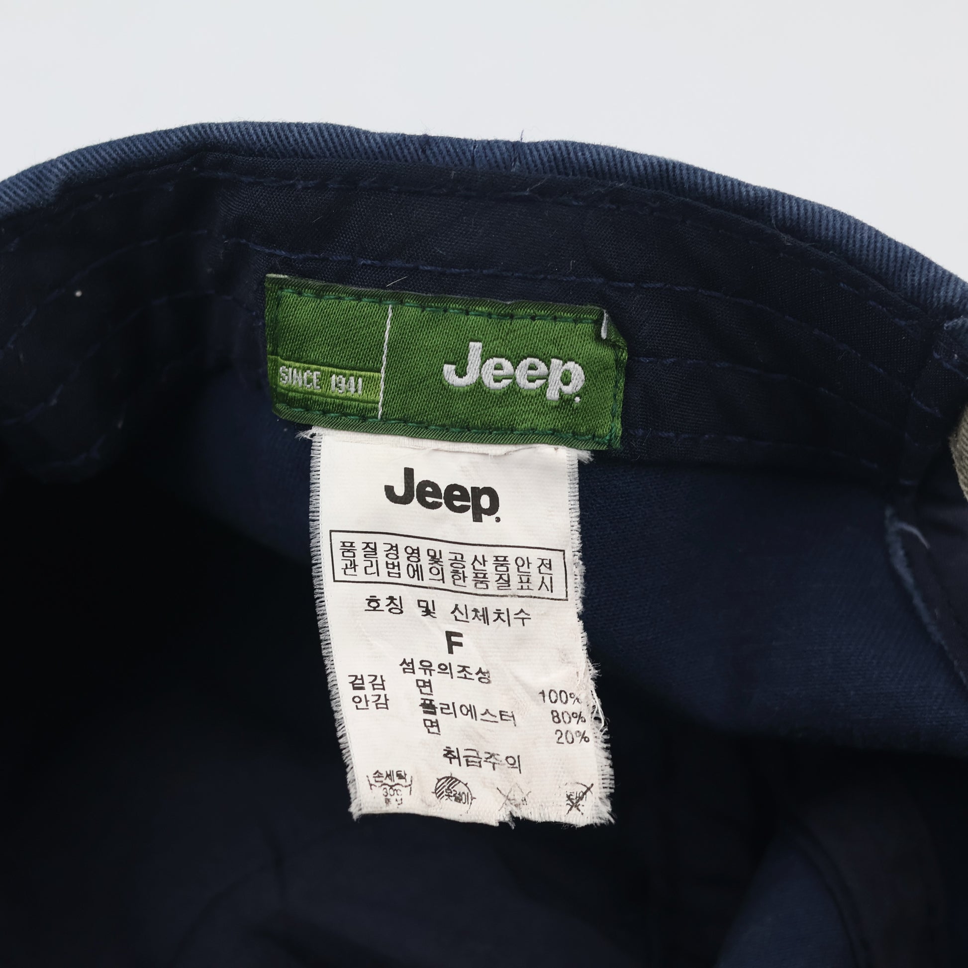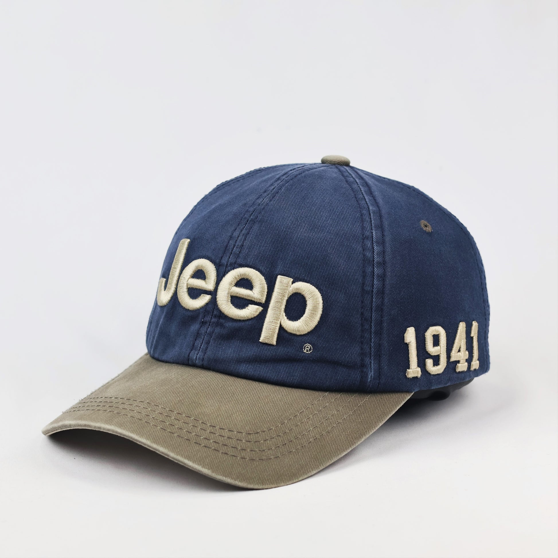 Detailing: Large "Jeep" raised embroidery on front and "1941" on the left panel