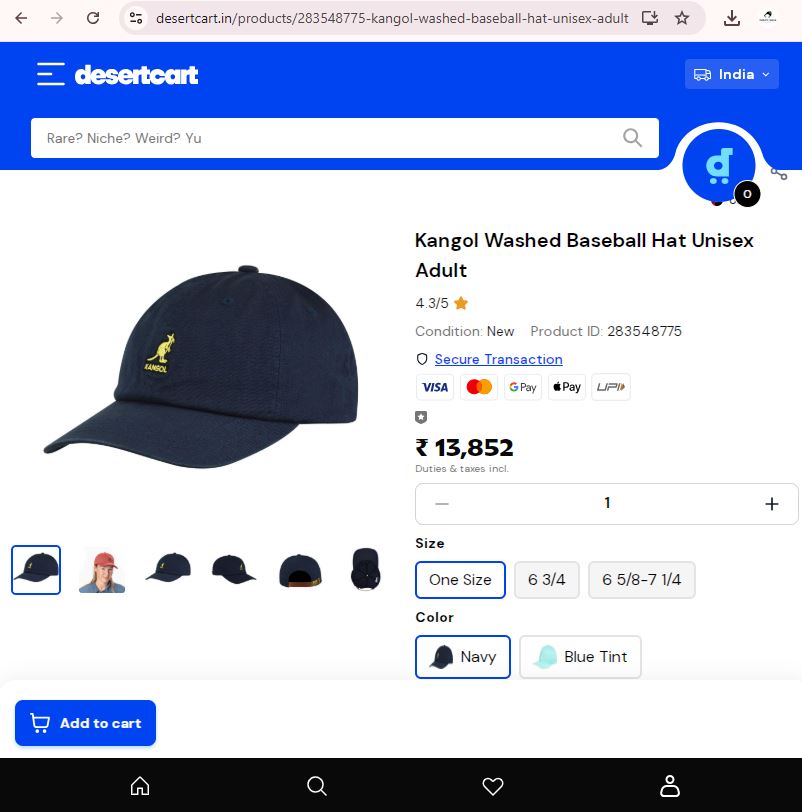 Vintage Kangol Washed Cotton Baseball Cap - Black Dad Hat | Rs. 798.00