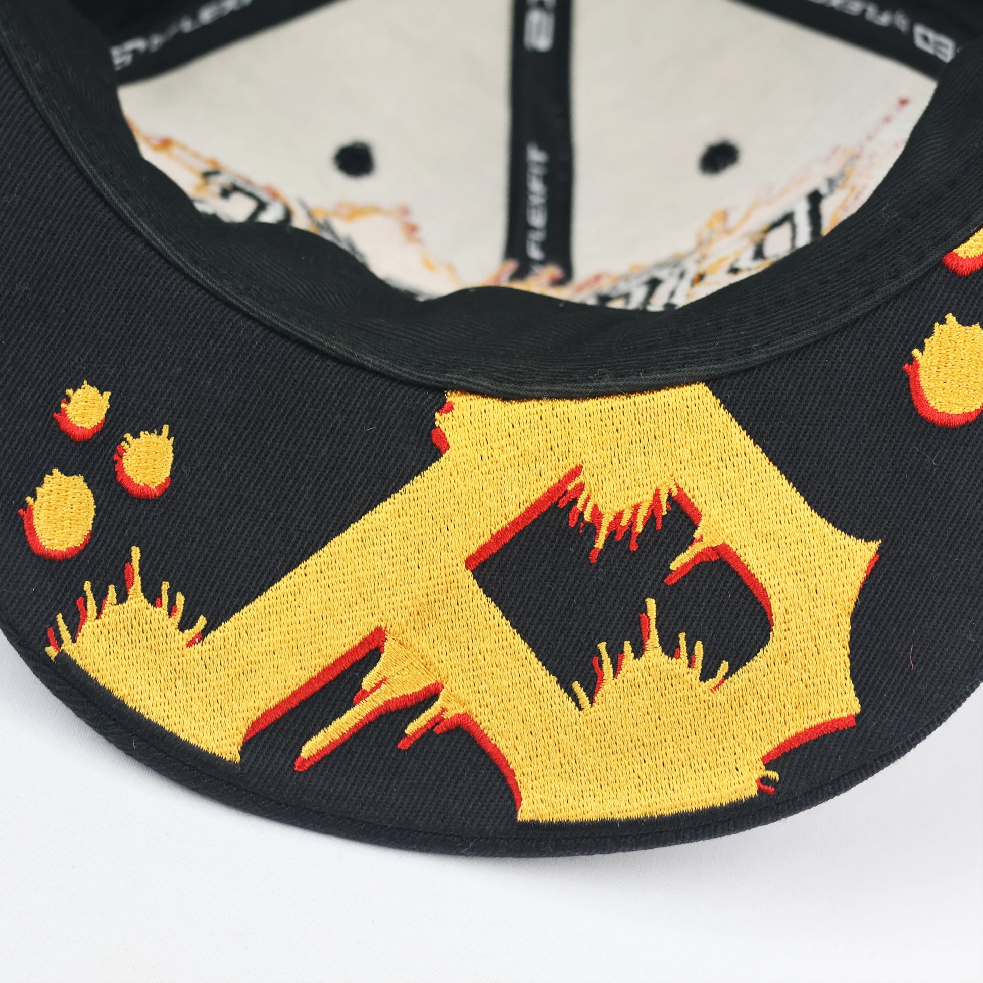 Color: Solid Black with Yellow and Orange splatter embroidery