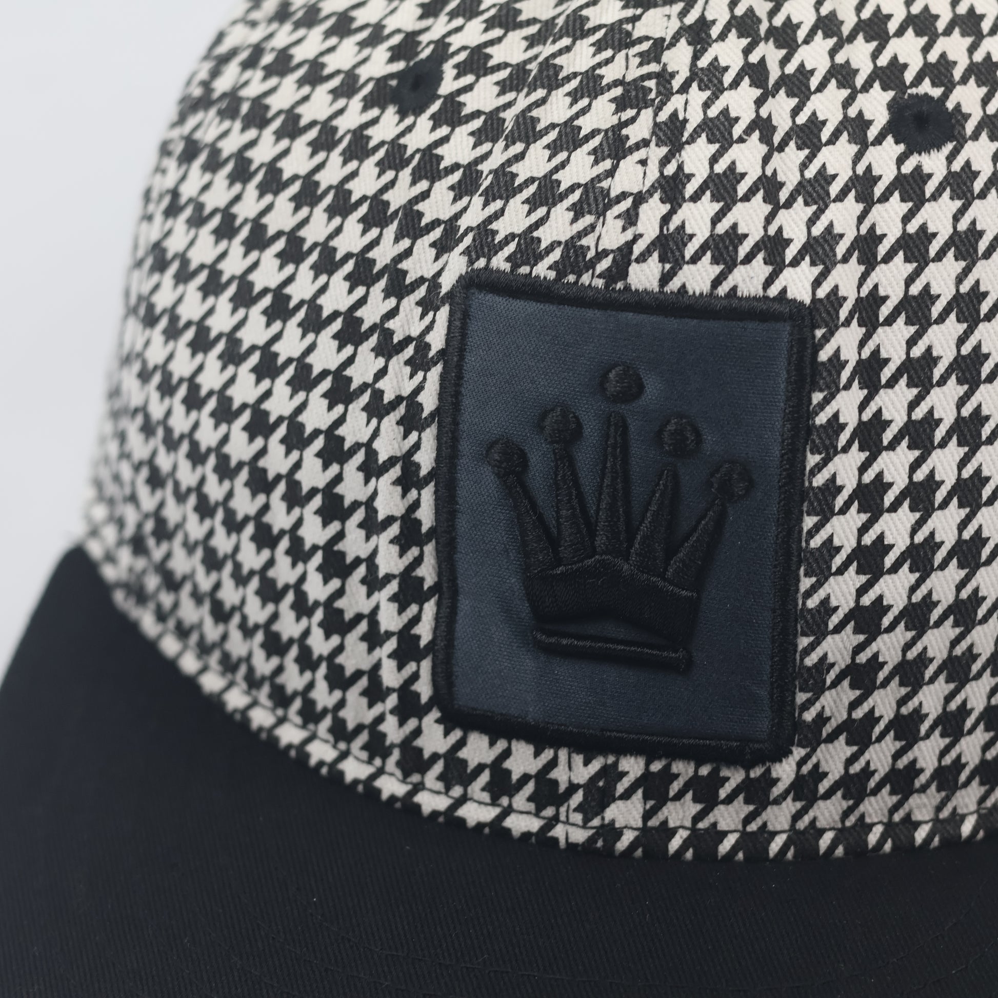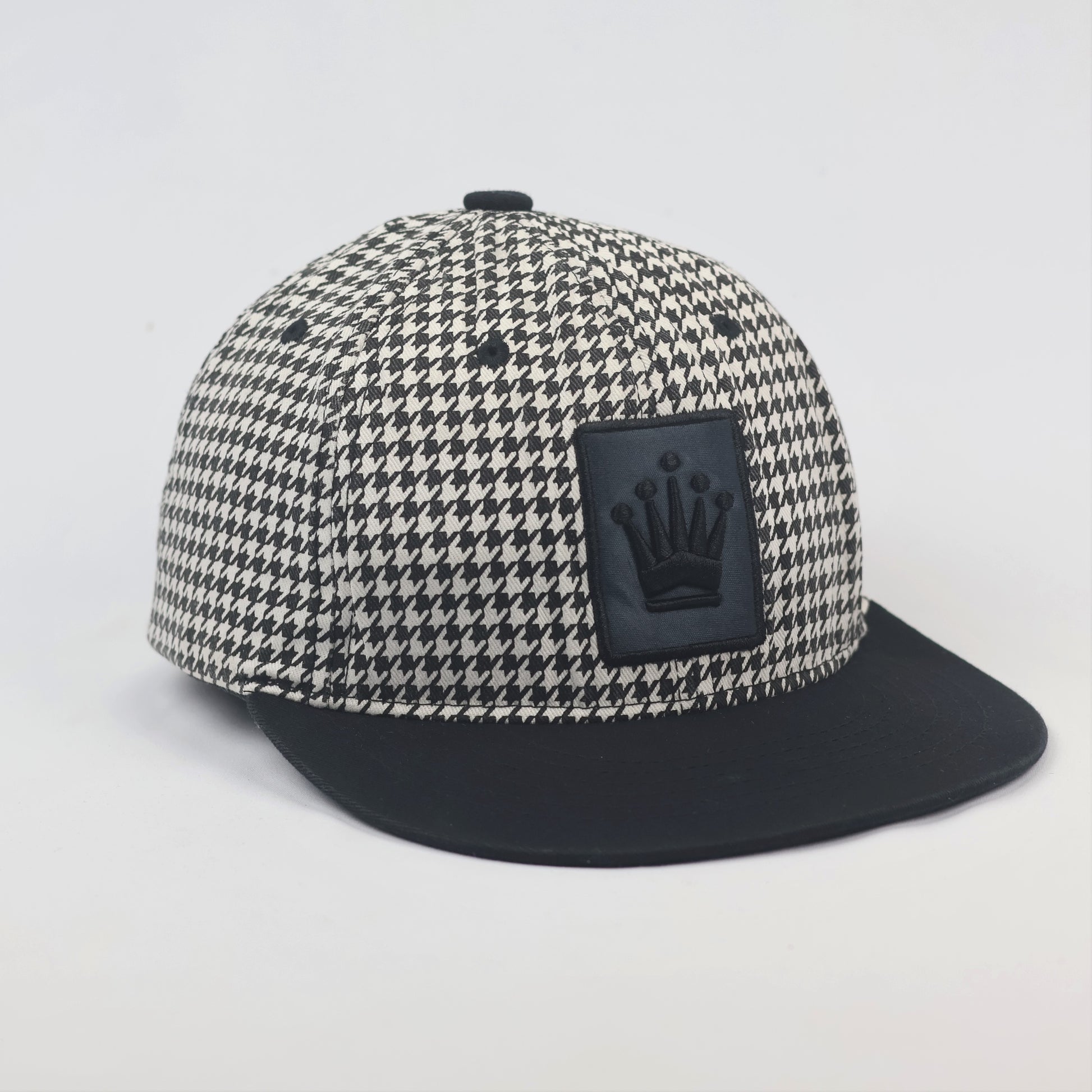 Vintage Olympos Houndstooth Snapback Thrifted Hat - Black & White Crown Cap